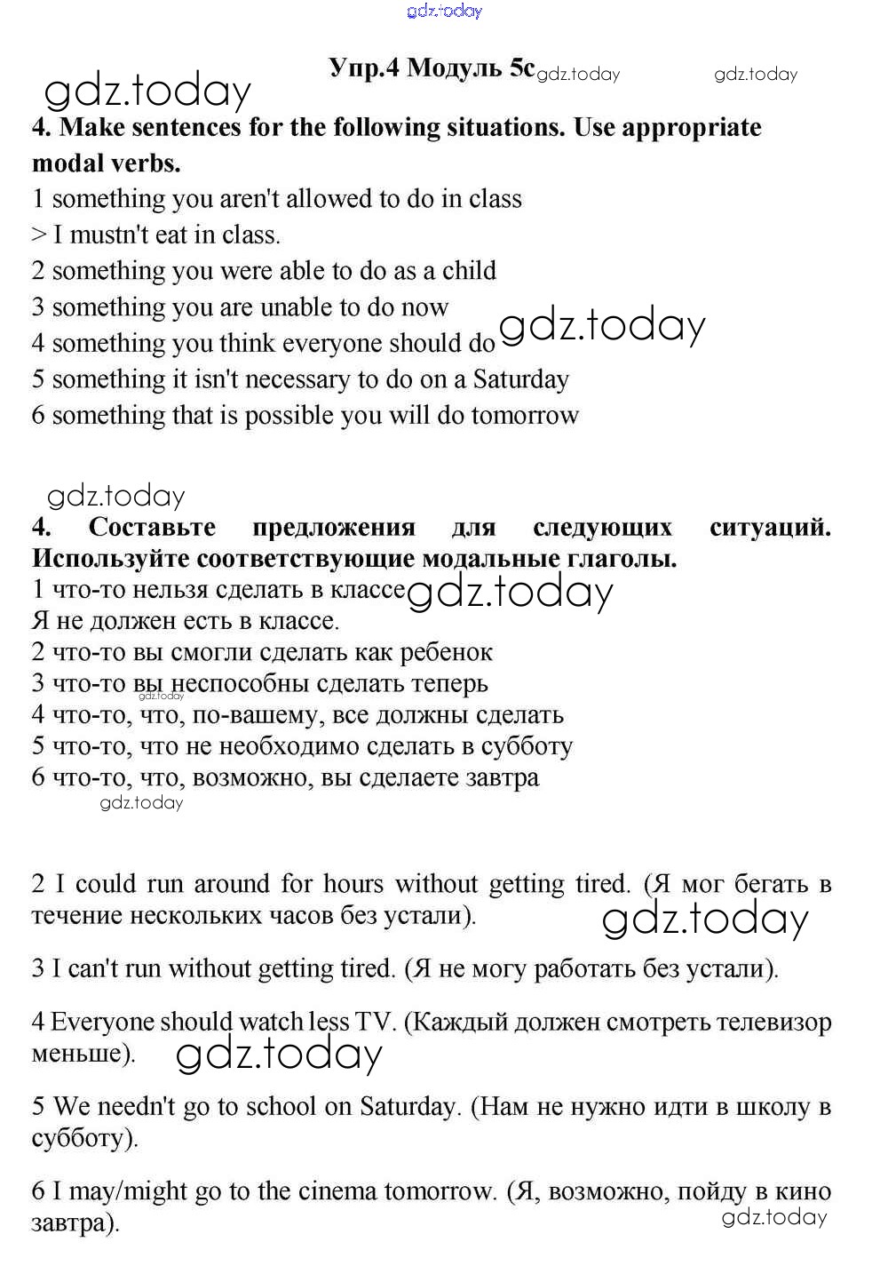 На страницах сайта gdz.today вы найдете учебный и вспомогательный материал, направленный на улучшения знаний школьной программы. ГДЗ - онлайн мир знаний Часть 5c Решение к Module 5 4 Учебнику по Английскому языку для 11 класса Эванс, Дули Просвещение Spotlight 2015