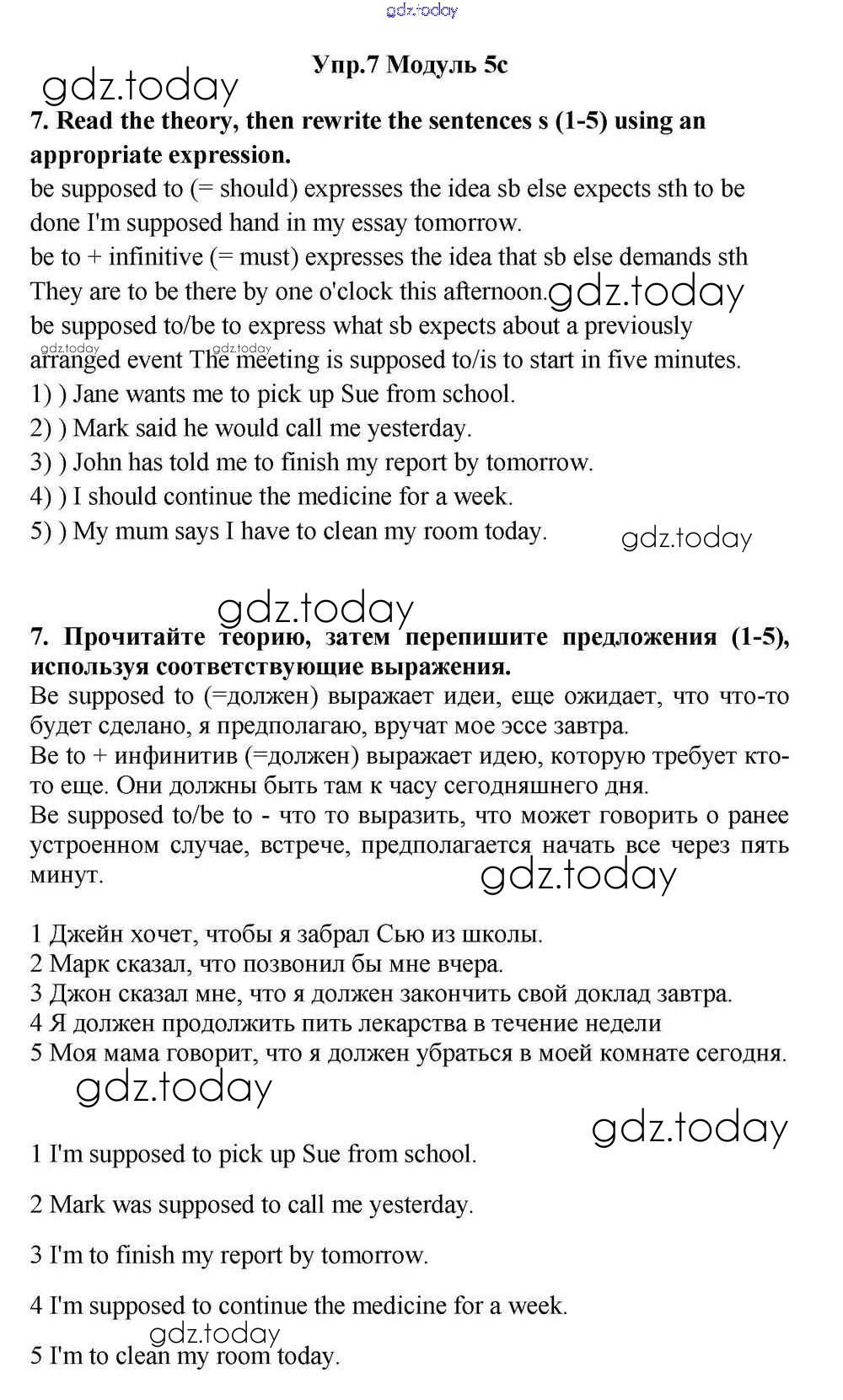 На страницах сайта gdz.today вы найдете учебный и вспомогательный материал, направленный на улучшения знаний школьной программы. ГДЗ - онлайн мир знаний Часть 5c Решение к Module 5 7 Учебнику по Английскому языку для 11 класса Эванс, Дули  Просвещение Spotlight 2015