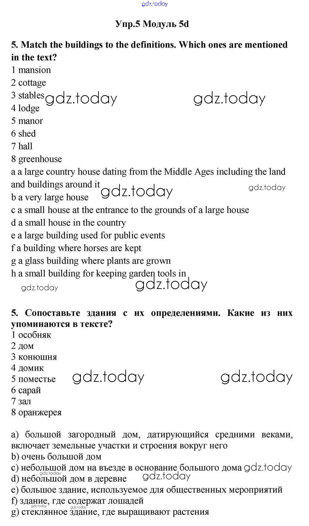 На страницах сайта gdz.today вы найдете учебный и вспомогательный материал, направленный на улучшения знаний школьной программы. ГДЗ - онлайн мир знаний Часть 5d Решение к Module 5 5 Учебнику по Английскому языку для 11 класса Эванс, Дули  Просвещение Spotlight 2015