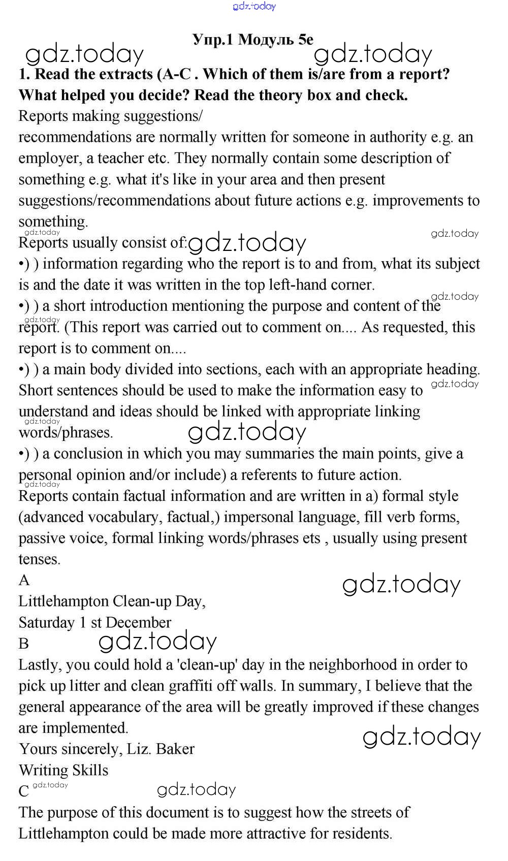 На страницах сайта gdz.today вы найдете учебный и вспомогательный материал, направленный на улучшения знаний школьной программы. ГДЗ - онлайн мир знаний Часть 5e Решение к Module 5 1 Учебнику по Английскому языку для 11 класса Эванс, Дули  Просвещение Spotlight 2015