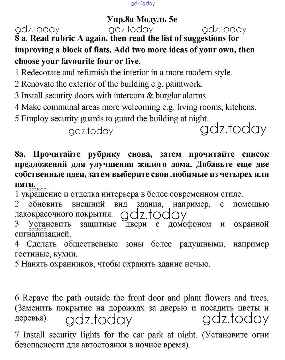 На страницах сайта gdz.today вы найдете учебный и вспомогательный материал, направленный на улучшения знаний школьной программы. ГДЗ - онлайн мир знаний Часть 5e Решение к Module 5 8a Учебнику по Английскому языку для 11 класса Эванс, Дули Просвещение Spotlight 2015