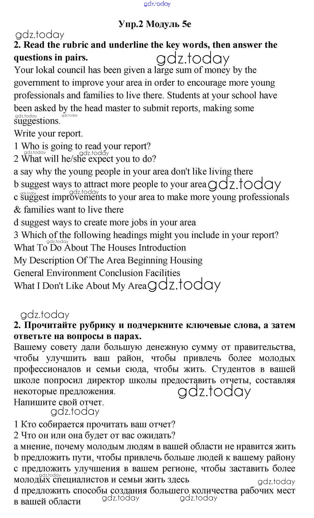 На страницах сайта gdz.today вы найдете учебный и вспомогательный материал, направленный на улучшения знаний школьной программы. ГДЗ - онлайн мир знаний Часть 5e Решение к Module 5 2 Учебнику по Английскому языку для 11 класса Эванс, Дули Просвещение Spotlight 2015