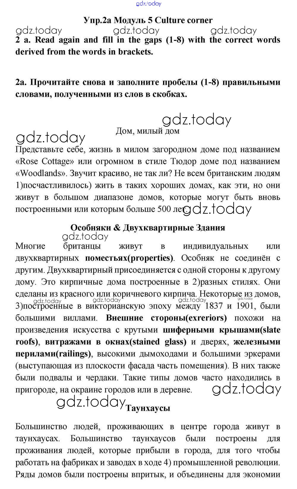 На страницах сайта gdz.today вы найдете учебный и вспомогательный материал, направленный на улучшения знаний школьной программы. ГДЗ - онлайн мир знаний Culture corner Решение к Module 5 2a Учебнику по Английскому языку для 11 класса Эванс, Дули  Просвещение Spotlight 2015