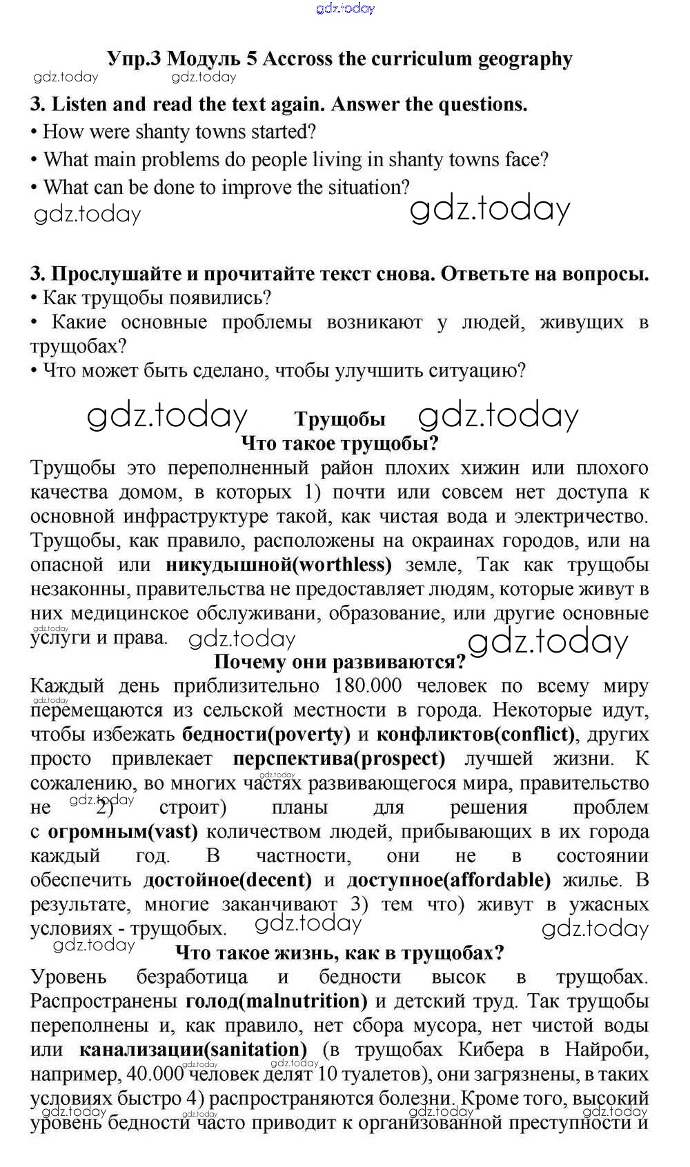 На страницах сайта gdz.today вы найдете учебный и вспомогательный материал, направленный на улучшения знаний школьной программы. ГДЗ - онлайн мир знаний Accross the curriculum geography Решение к Module 5 3 Учебнику по Английскому языку для 11 класса Эванс, Дули Просвещение Spotlight 2015
