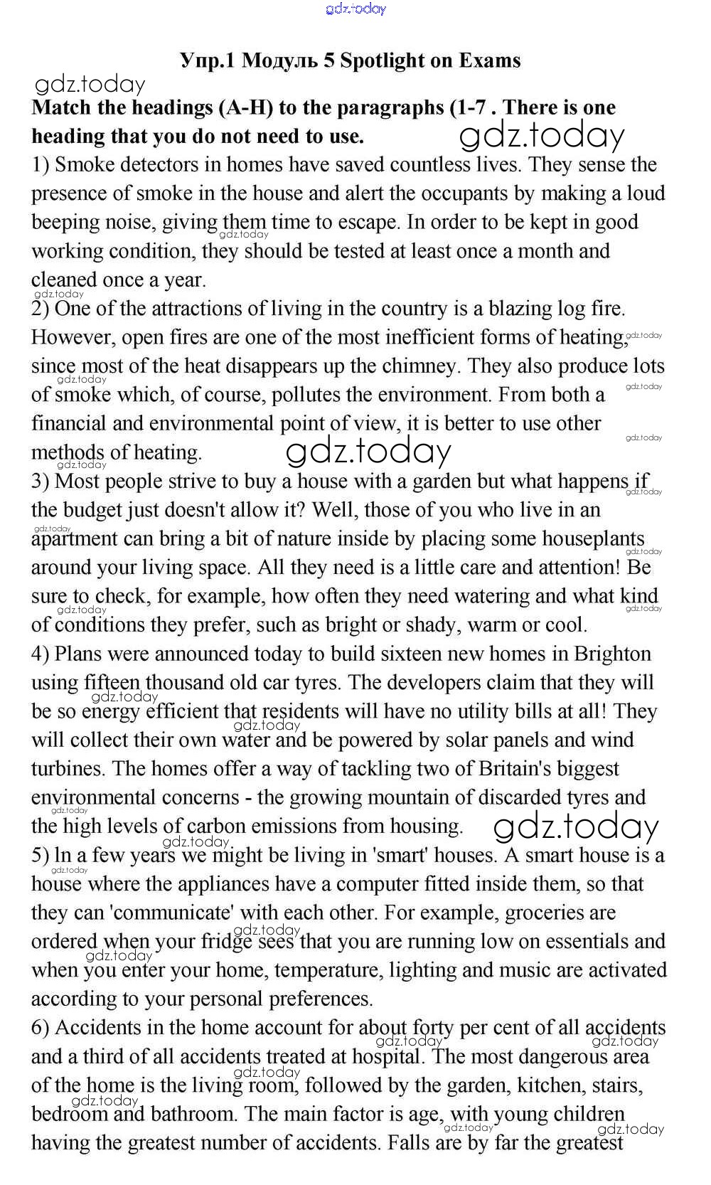 На страницах сайта gdz.today вы найдете учебный и вспомогательный материал, направленный на улучшения знаний школьной программы. ГДЗ - онлайн мир знаний Spotlight on Exams Решение к Module 5 1 Учебнику по Английскому языку для 11 класса Эванс, Дули  Просвещение Spotlight 2015