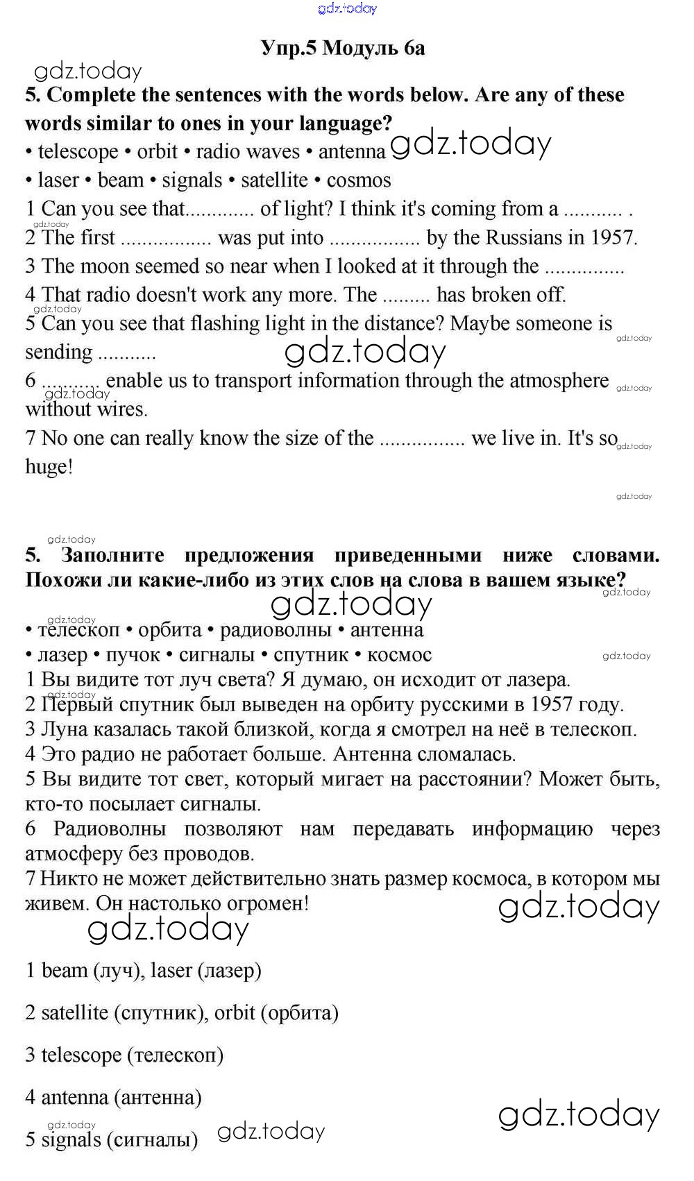 На страницах сайта gdz.today вы найдете учебный и вспомогательный материал, направленный на улучшения знаний школьной программы. ГДЗ - онлайн мир знаний Часть 6а Решение к Module 6 5 Учебнику по Английскому языку для 11 класса Эванс, Дули Просвещение Spotlight 2015