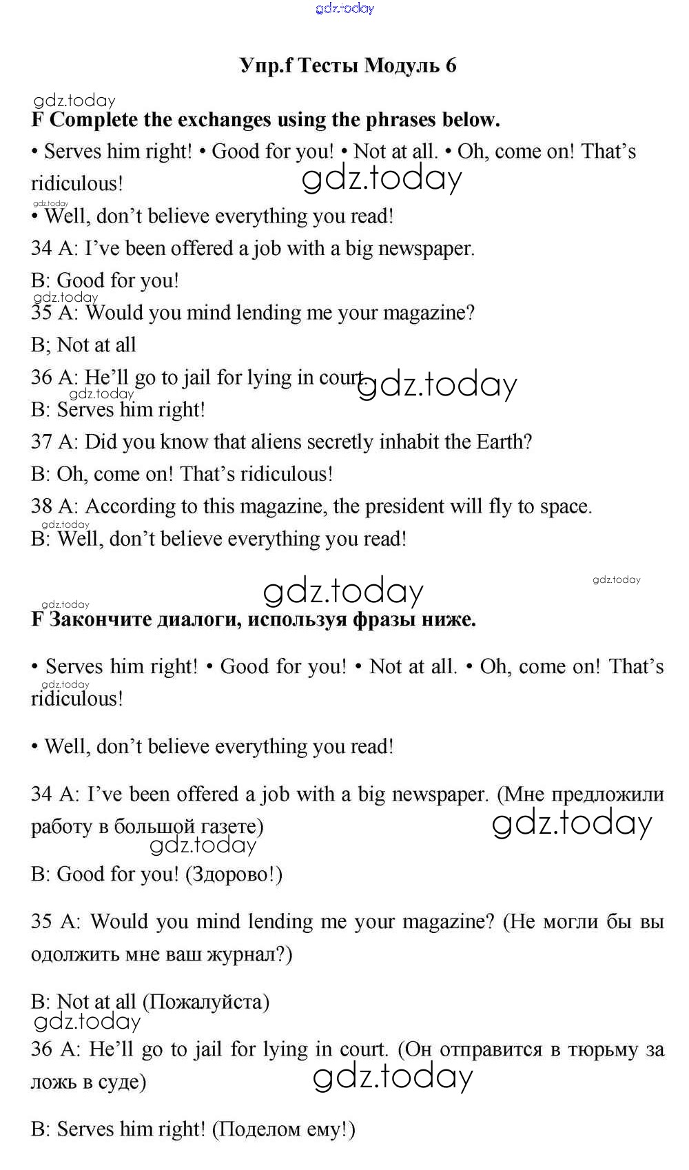 На страницах сайта gdz.today вы найдете учебный и вспомогательный материал, направленный на улучшения знаний школьной программы. ГДЗ - онлайн мир знаний Тесты Решение к Module 6 F Учебнику по Английскому языку для 11 класса Эванс, Дули Просвещение Spotlight 2015