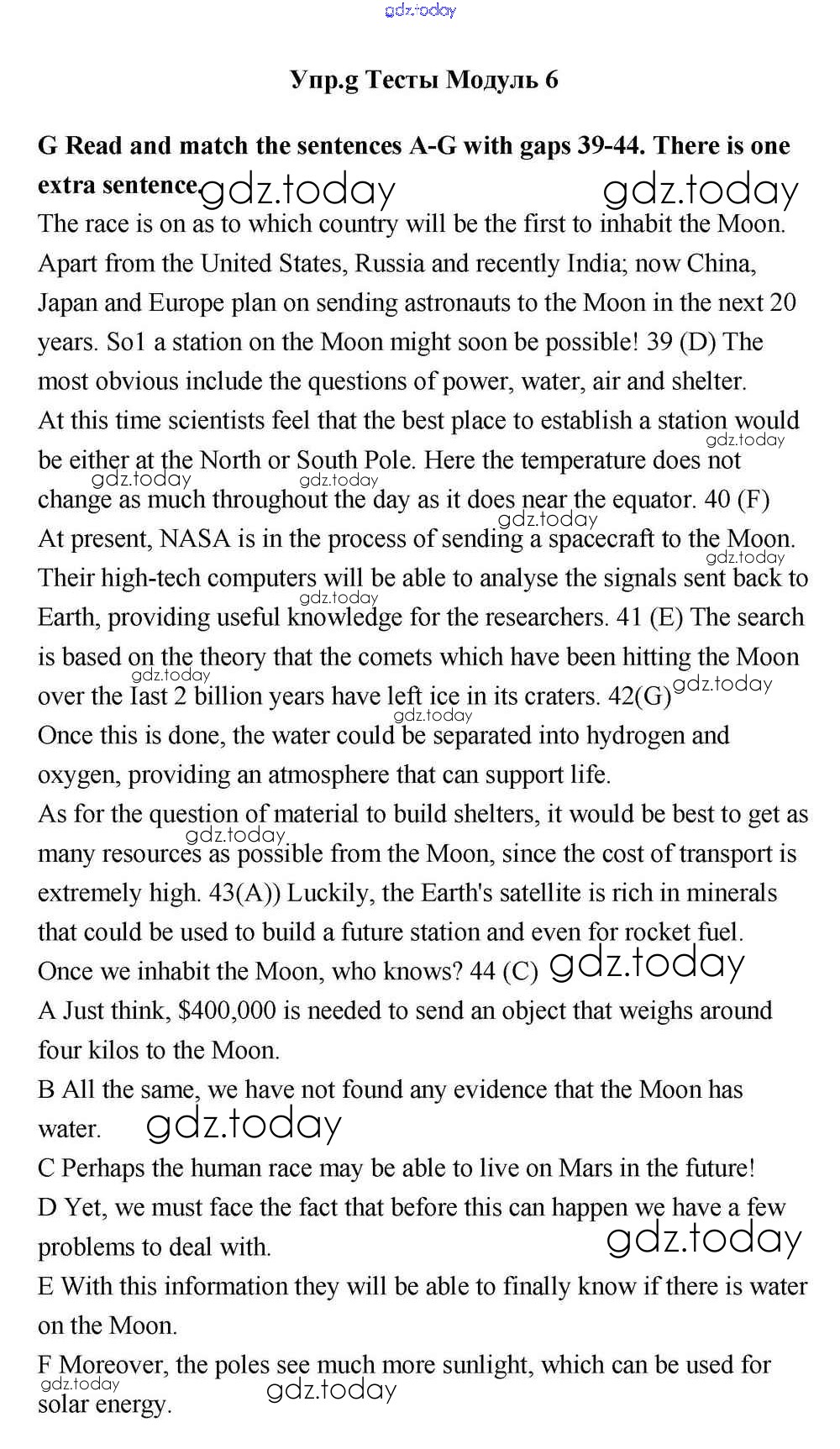 На страницах сайта gdz.today вы найдете учебный и вспомогательный материал, направленный на улучшения знаний школьной программы. ГДЗ - онлайн мир знаний Тесты Решение к Module 6 G Учебнику по Английскому языку для 11 класса Эванс, Дули Просвещение Spotlight 2015