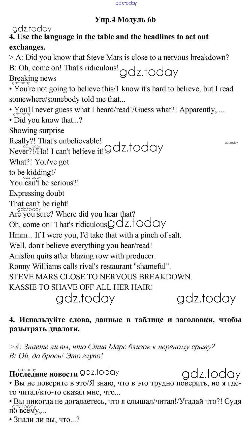 На страницах сайта gdz.today вы найдете учебный и вспомогательный материал, направленный на улучшения знаний школьной программы. ГДЗ - онлайн мир знаний Часть 6b Решение к Module 6 4 Учебнику по Английскому языку для 11 класса Эванс, Дули Просвещение Spotlight 2015