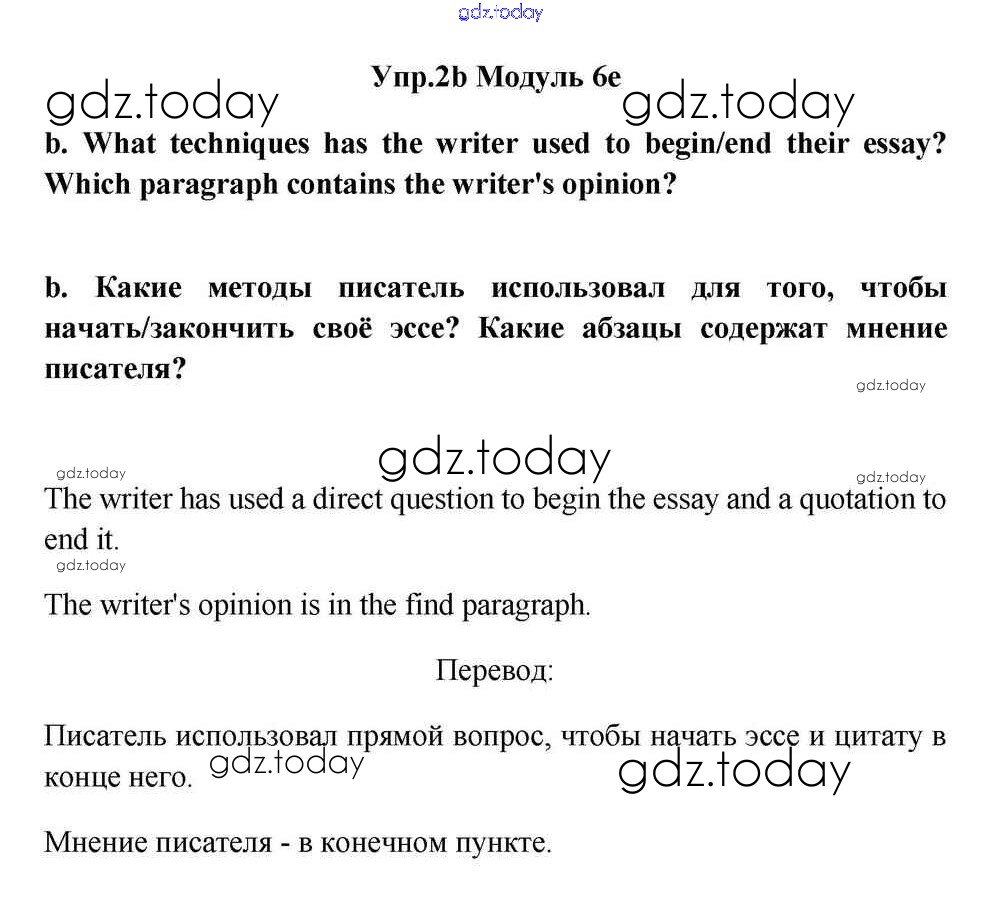 На страницах сайта gdz.today вы найдете учебный и вспомогательный материал, направленный на улучшения знаний школьной программы. ГДЗ - онлайн мир знаний Часть 6e Решение к Module 6 2b Учебнику по Английскому языку для 11 класса Эванс, Дули Просвещение Spotlight 2015