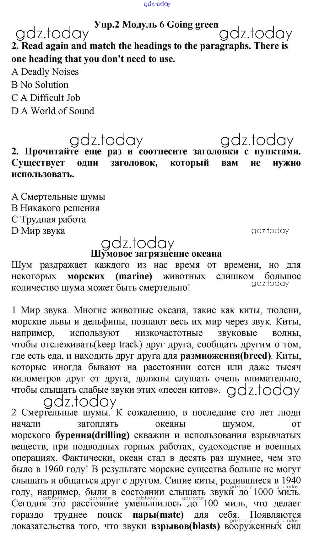 На страницах сайта gdz.today вы найдете учебный и вспомогательный материал, направленный на улучшения знаний школьной программы. ГДЗ - онлайн мир знаний Going green Решение к Module 6 2 Учебнику по Английскому языку для 11 класса Эванс, Дули Просвещение Spotlight 2015