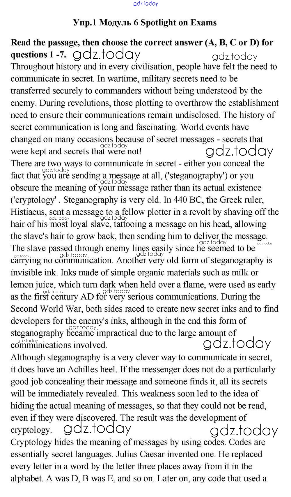 На страницах сайта gdz.today вы найдете учебный и вспомогательный материал, направленный на улучшения знаний школьной программы. ГДЗ - онлайн мир знаний Spotlight on Exams Решение к Module 6 1 Учебнику по Английскому языку для 11 класса Эванс, Дули Просвещение Spotlight 2015