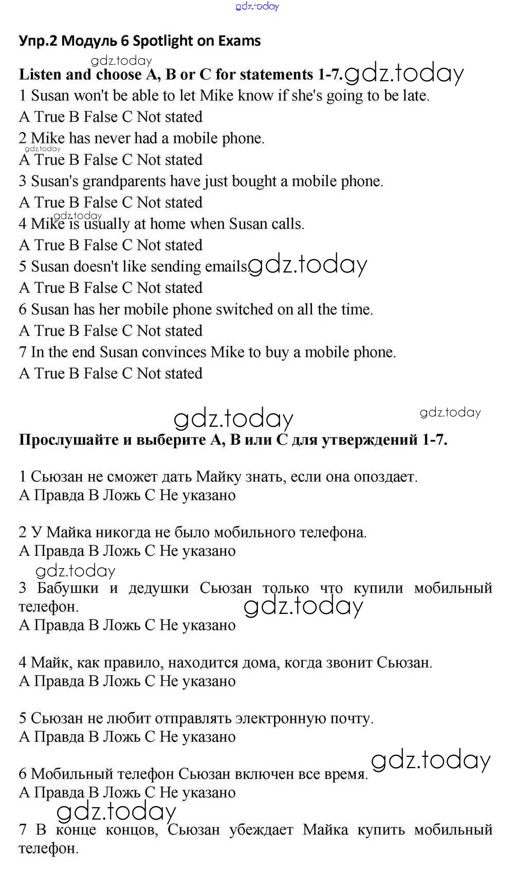 На страницах сайта gdz.today вы найдете учебный и вспомогательный материал, направленный на улучшения знаний школьной программы. ГДЗ - онлайн мир знаний Spotlight on Exams Решение к Module 6 2 Учебнику по Английскому языку для 11 класса Эванс, Дули  Просвещение Spotlight 2015