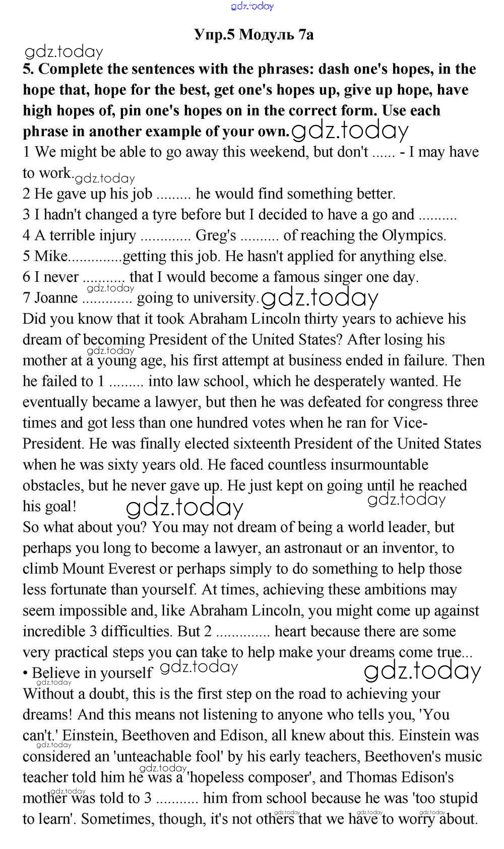 На страницах сайта gdz.today вы найдете учебный и вспомогательный материал, направленный на улучшения знаний школьной программы. ГДЗ - онлайн мир знаний Часть 7а Решение к Module 7 5 Учебнику по Английскому языку для 11 класса Эванс, Дули Просвещение Spotlight 2015