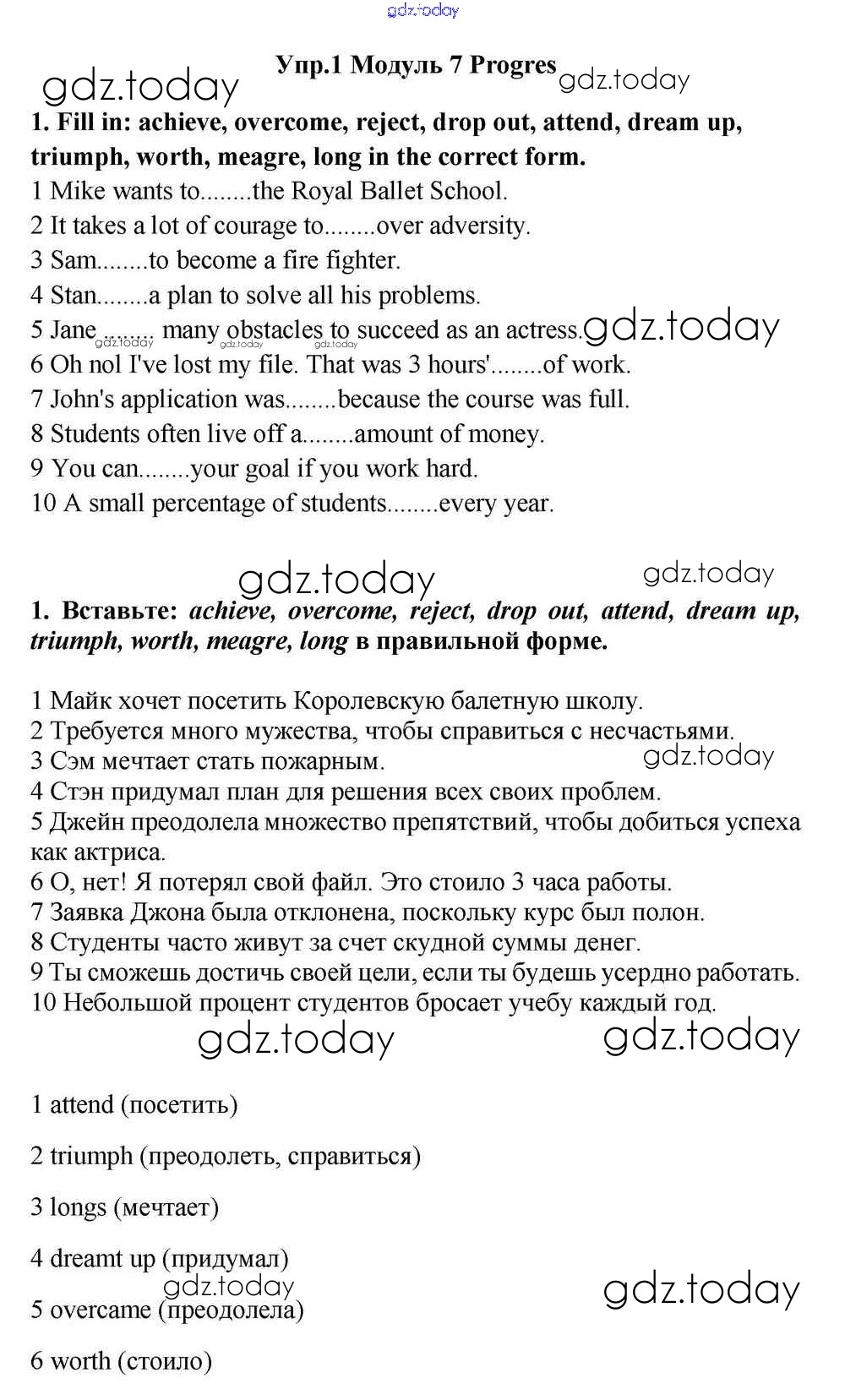 На страницах сайта gdz.today вы найдете учебный и вспомогательный материал, направленный на улучшения знаний школьной программы. ГДЗ - онлайн мир знаний Progress Check Решение к Module 7 1 Учебнику по Английскому языку для 11 класса Эванс, Дули Просвещение Spotlight 2015