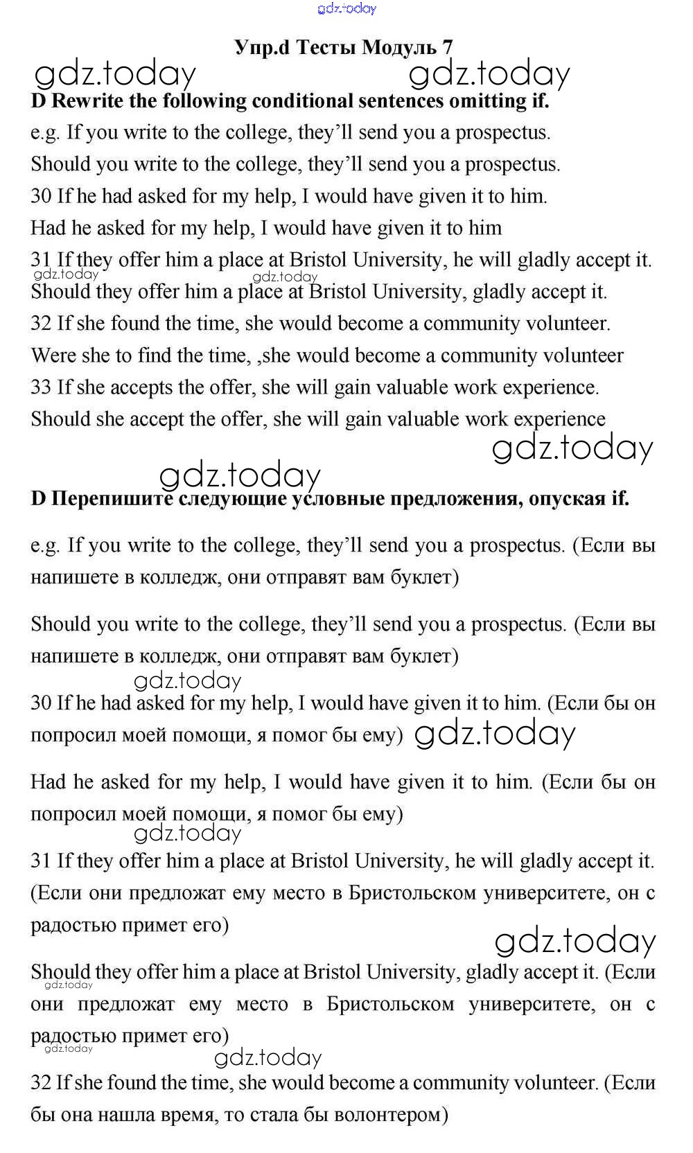На страницах сайта gdz.today вы найдете учебный и вспомогательный материал, направленный на улучшения знаний школьной программы. ГДЗ - онлайн мир знаний Тесты Решение к Module 7 D Учебнику по Английскому языку для 11 класса Эванс, Дули Просвещение Spotlight 2015