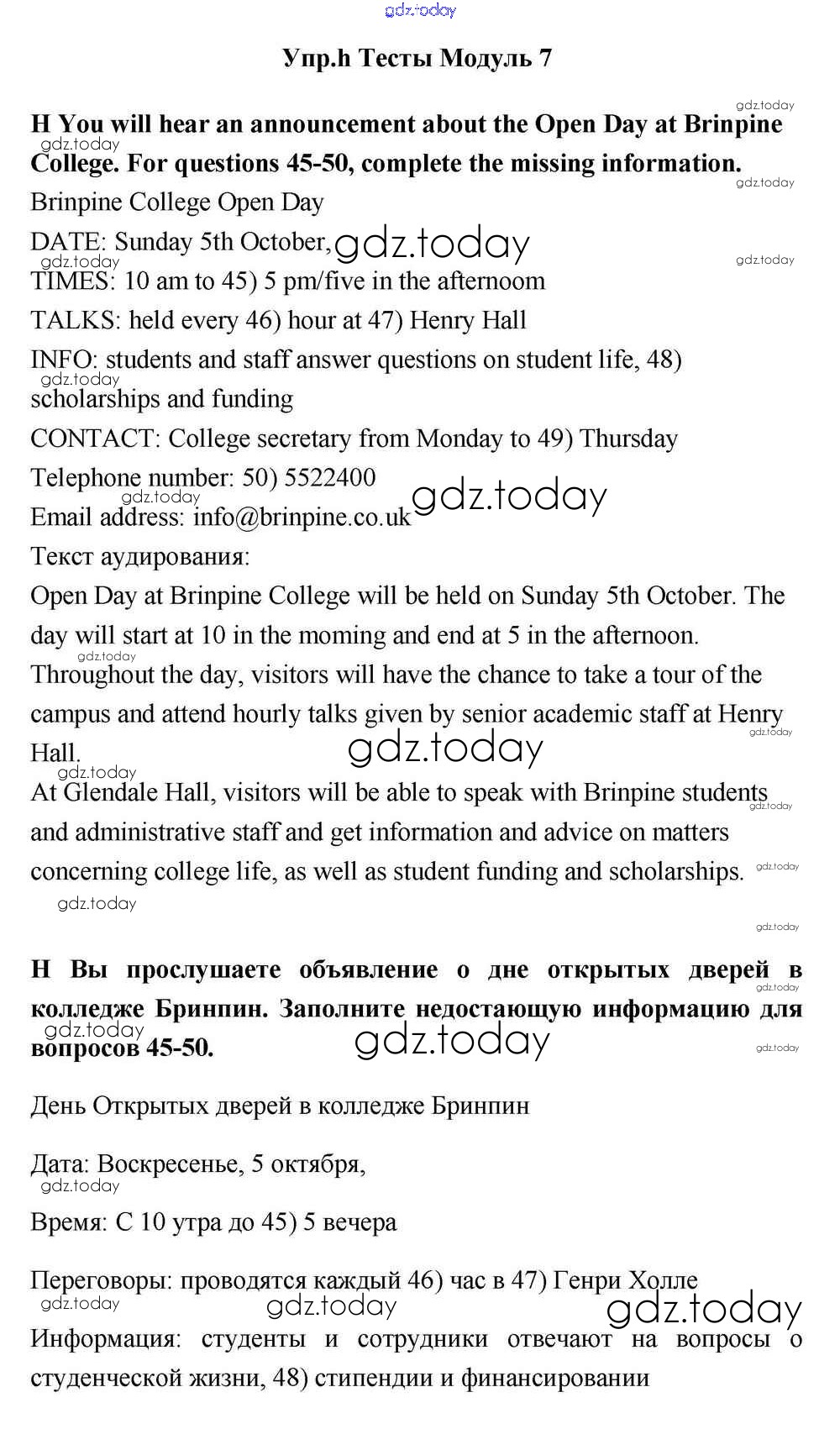 На страницах сайта gdz.today вы найдете учебный и вспомогательный материал, направленный на улучшения знаний школьной программы. ГДЗ - онлайн мир знаний Тесты Решение к Module 7 H Учебнику по Английскому языку для 11 класса Эванс, Дули  Просвещение Spotlight 2015