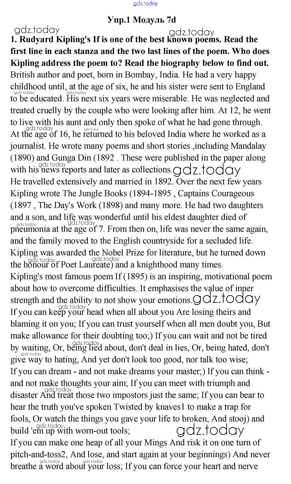 На страницах сайта gdz.today вы найдете учебный и вспомогательный материал, направленный на улучшения знаний школьной программы. ГДЗ - онлайн мир знаний Часть 7d Решение к Module 7 1 Учебнику по Английскому языку для 11 класса Эванс, Дули Просвещение Spotlight 2015