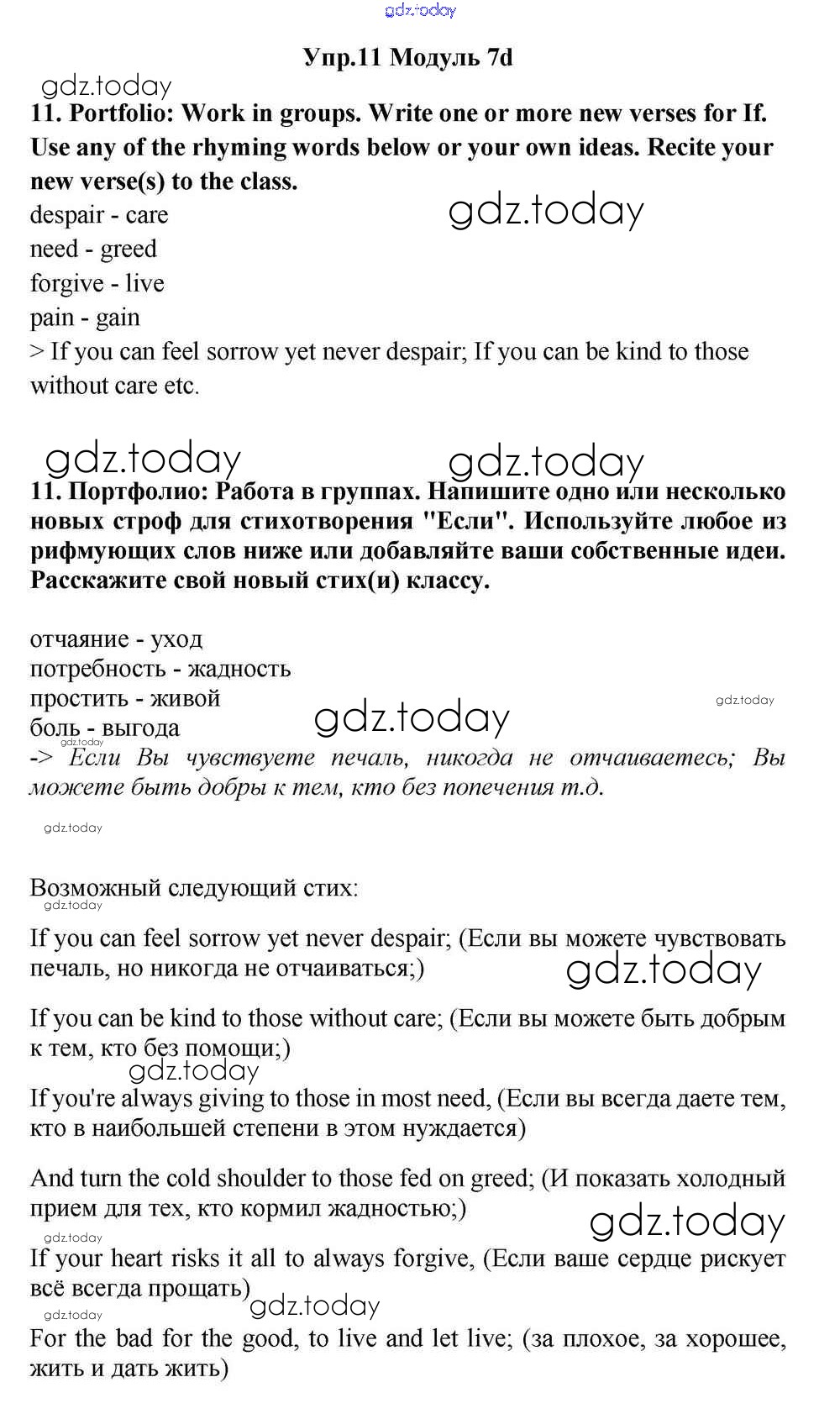 На страницах сайта gdz.today вы найдете учебный и вспомогательный материал, направленный на улучшения знаний школьной программы. ГДЗ - онлайн мир знаний Часть 7d Решение к Module 7 11 Учебнику по Английскому языку для 11 класса Эванс, Дули Просвещение Spotlight 2015