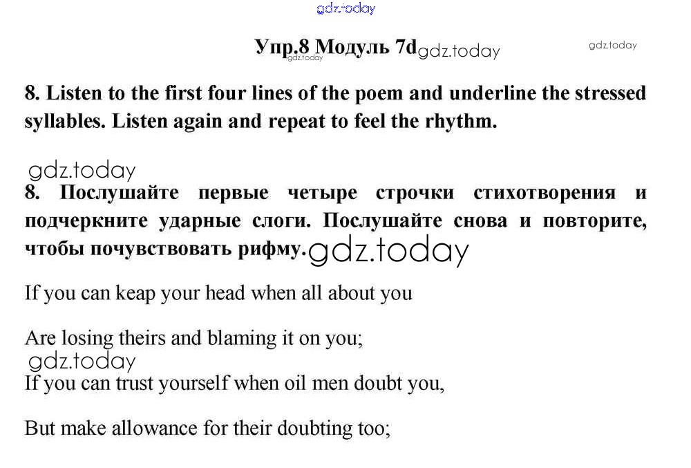 На страницах сайта gdz.today вы найдете учебный и вспомогательный материал, направленный на улучшения знаний школьной программы. ГДЗ - онлайн мир знаний Часть 7d Решение к Module 7 8 Учебнику по Английскому языку для 11 класса Эванс, Дули Просвещение Spotlight 2015