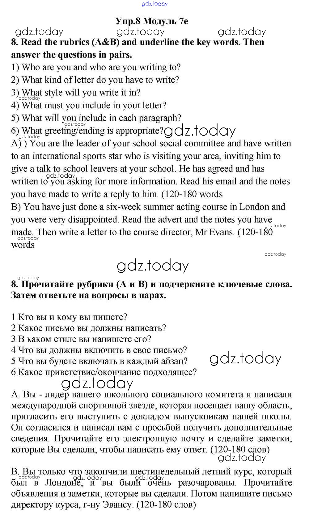На страницах сайта gdz.today вы найдете учебный и вспомогательный материал, направленный на улучшения знаний школьной программы. ГДЗ - онлайн мир знаний Часть 7e Решение к Module 7 8 Учебнику по Английскому языку для 11 класса Эванс, Дули  Просвещение Spotlight 2015