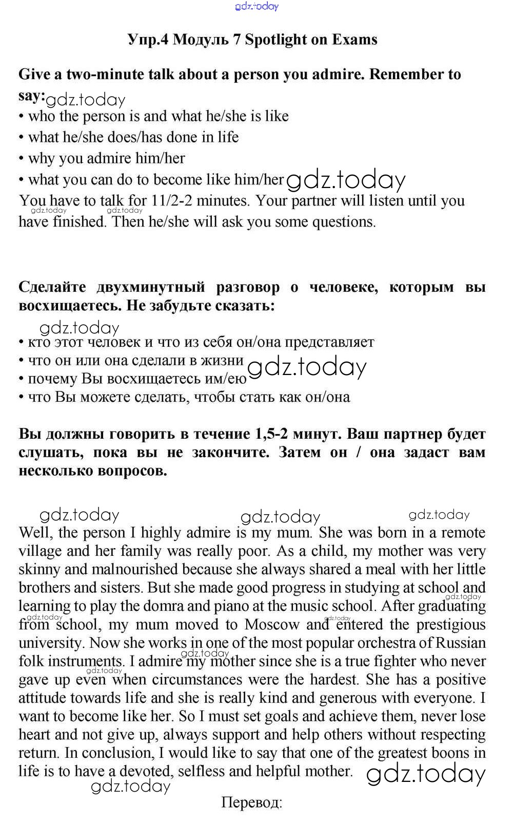 На страницах сайта gdz.today вы найдете учебный и вспомогательный материал, направленный на улучшения знаний школьной программы. ГДЗ - онлайн мир знаний Spotlight on Exams Решение к Module 7 4 Учебнику по Английскому языку для 11 класса Эванс, Дули  Просвещение Spotlight 2015