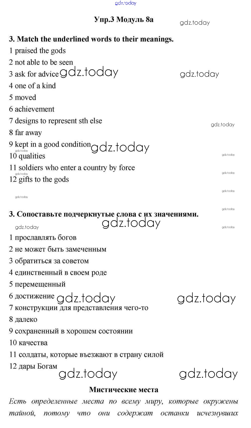 На страницах сайта gdz.today вы найдете учебный и вспомогательный материал, направленный на улучшения знаний школьной программы. ГДЗ - онлайн мир знаний Часть 8а Решение к Module 8 3 Учебнику по Английскому языку для 11 класса Эванс, Дули  Просвещение Spotlight 2015