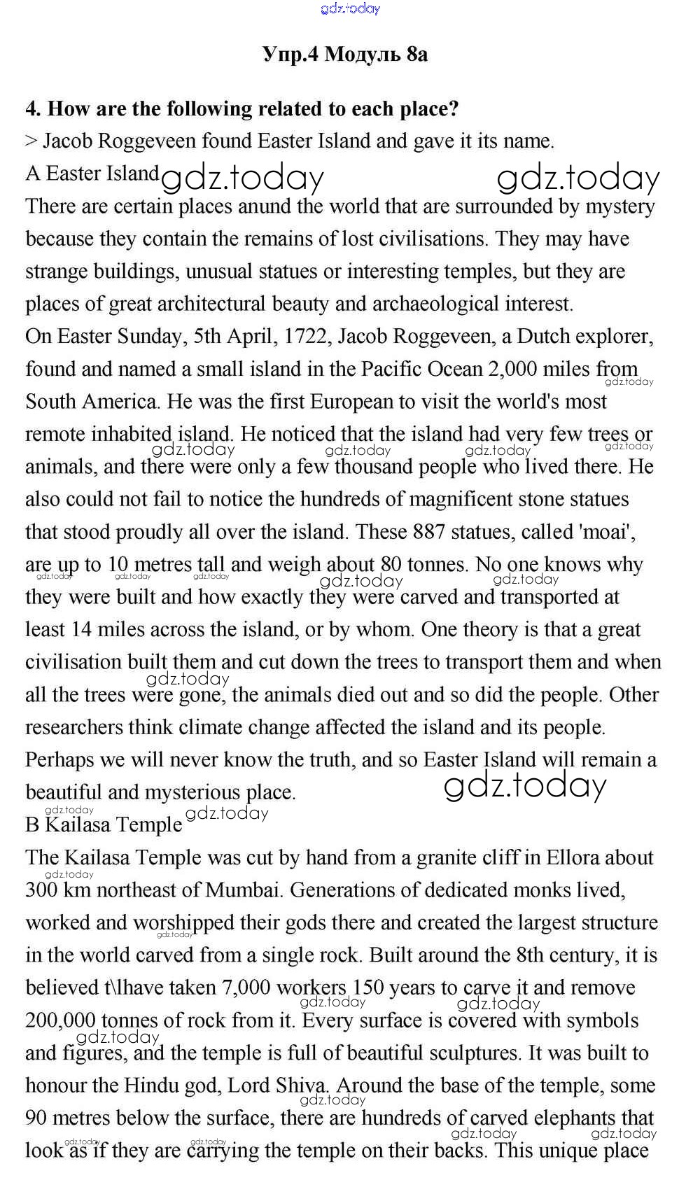 На страницах сайта gdz.today вы найдете учебный и вспомогательный материал, направленный на улучшения знаний школьной программы. ГДЗ - онлайн мир знаний Часть 8а Решение к Module 8 4 Учебнику по Английскому языку для 11 класса Эванс, Дули Просвещение Spotlight 2015