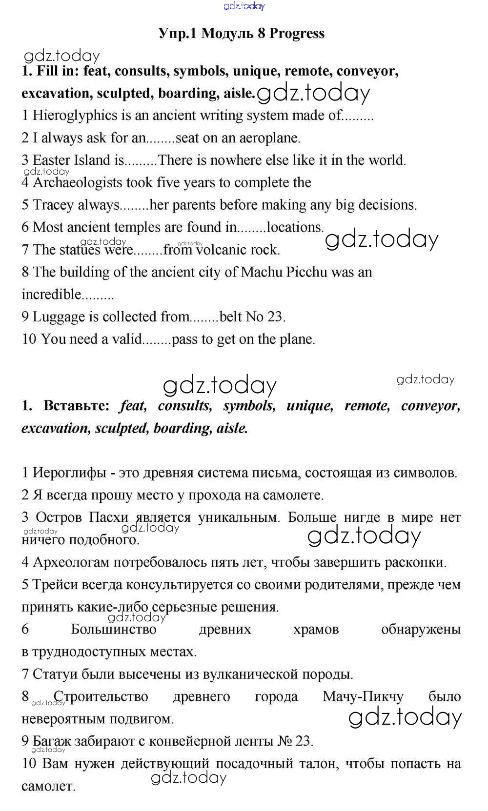 На страницах сайта gdz.today вы найдете учебный и вспомогательный материал, направленный на улучшения знаний школьной программы. ГДЗ - онлайн мир знаний Progress Check Решение к Module 8 1 Учебнику по Английскому языку для 11 класса Эванс, Дули Просвещение Spotlight 2015