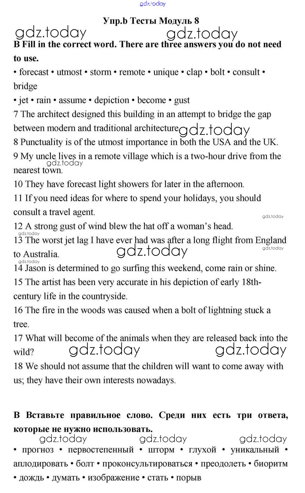 На страницах сайта gdz.today вы найдете учебный и вспомогательный материал, направленный на улучшения знаний школьной программы. ГДЗ - онлайн мир знаний Тесты Решение к Module 8 B Учебнику по Английскому языку для 11 класса Эванс, Дули  Просвещение Spotlight 2015