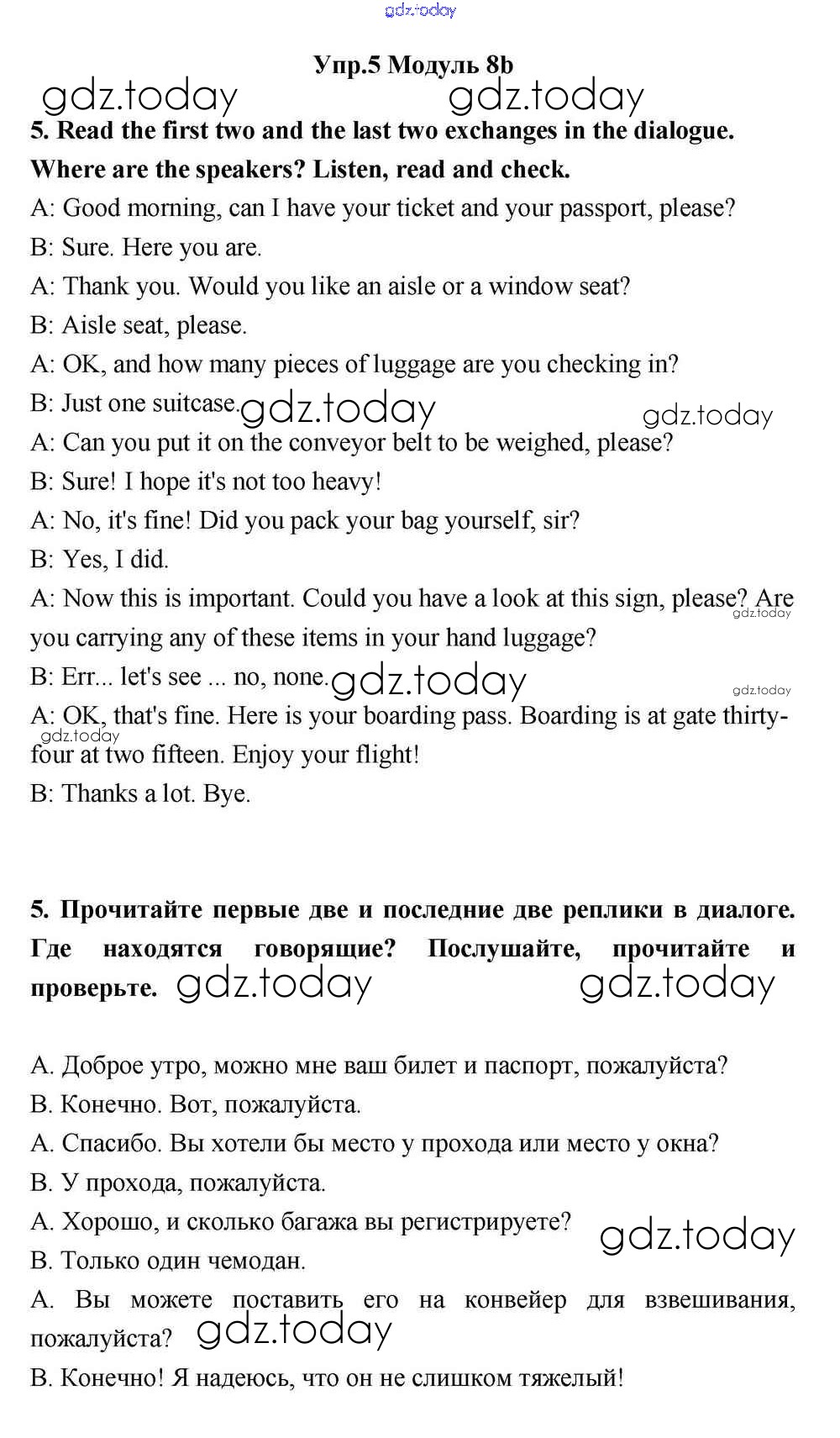 На страницах сайта gdz.today вы найдете учебный и вспомогательный материал, направленный на улучшения знаний школьной программы. ГДЗ - онлайн мир знаний Часть 8b Решение к Module 8 5 Учебнику по Английскому языку для 11 класса Эванс, Дули  Просвещение Spotlight 2015