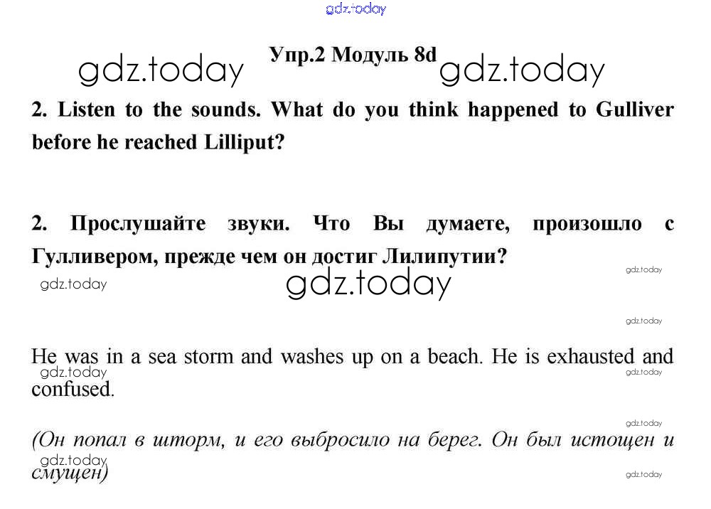 На страницах сайта gdz.today вы найдете учебный и вспомогательный материал, направленный на улучшения знаний школьной программы. ГДЗ - онлайн мир знаний Часть 8d Решение к Module 8 2 Учебнику по Английскому языку для 11 класса Эванс, Дули Просвещение Spotlight 2015
