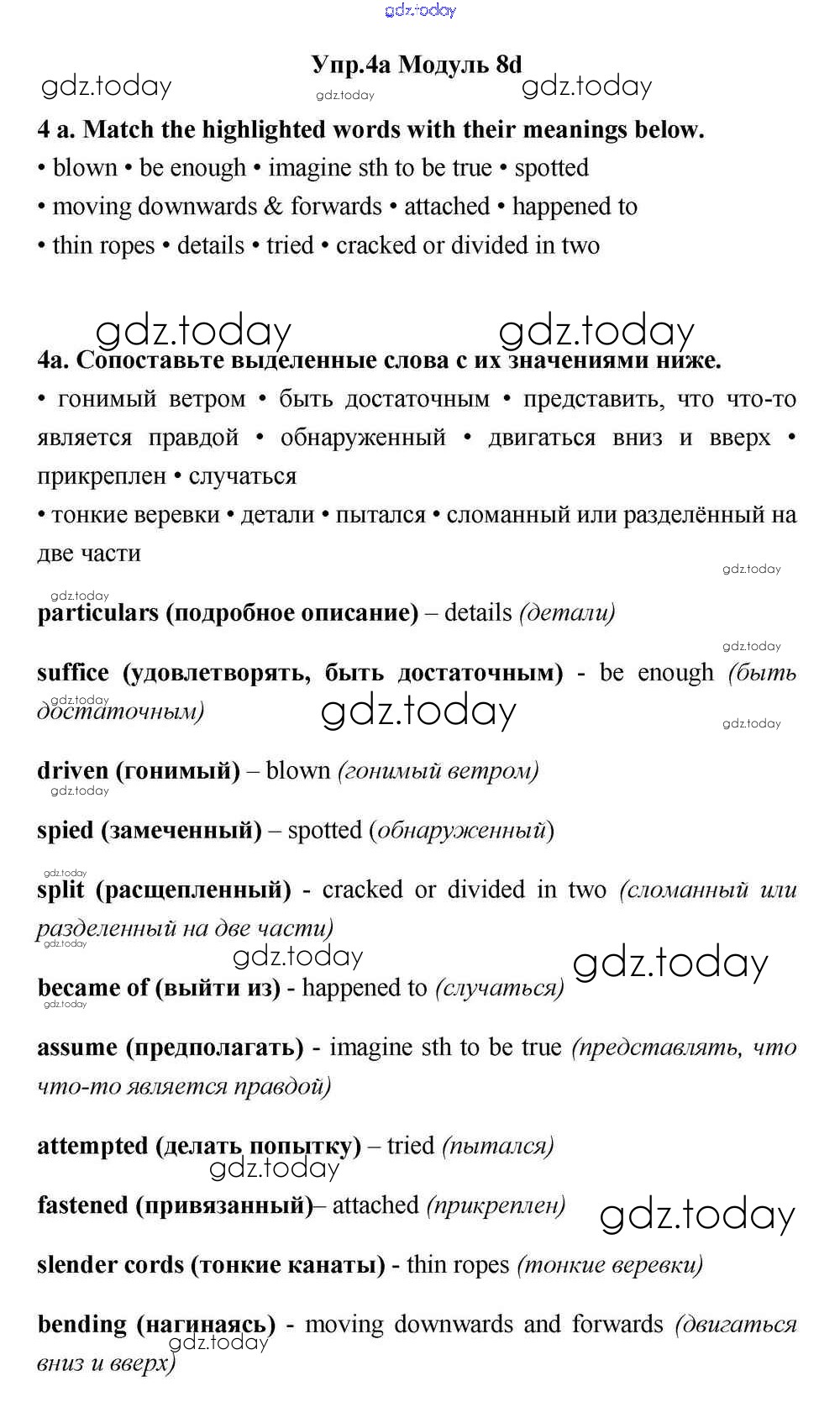 На страницах сайта gdz.today вы найдете учебный и вспомогательный материал, направленный на улучшения знаний школьной программы. ГДЗ - онлайн мир знаний Часть 8d Решение к Module 8 4a Учебнику по Английскому языку для 11 класса Эванс, Дули Просвещение Spotlight 2015