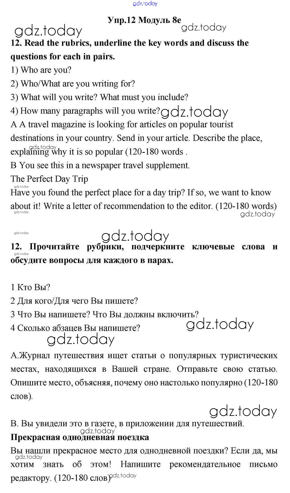 На страницах сайта gdz.today вы найдете учебный и вспомогательный материал, направленный на улучшения знаний школьной программы. ГДЗ - онлайн мир знаний Часть 8e Решение к Module 8 12 Учебнику по Английскому языку для 11 класса Эванс, Дули  Просвещение Spotlight 2015