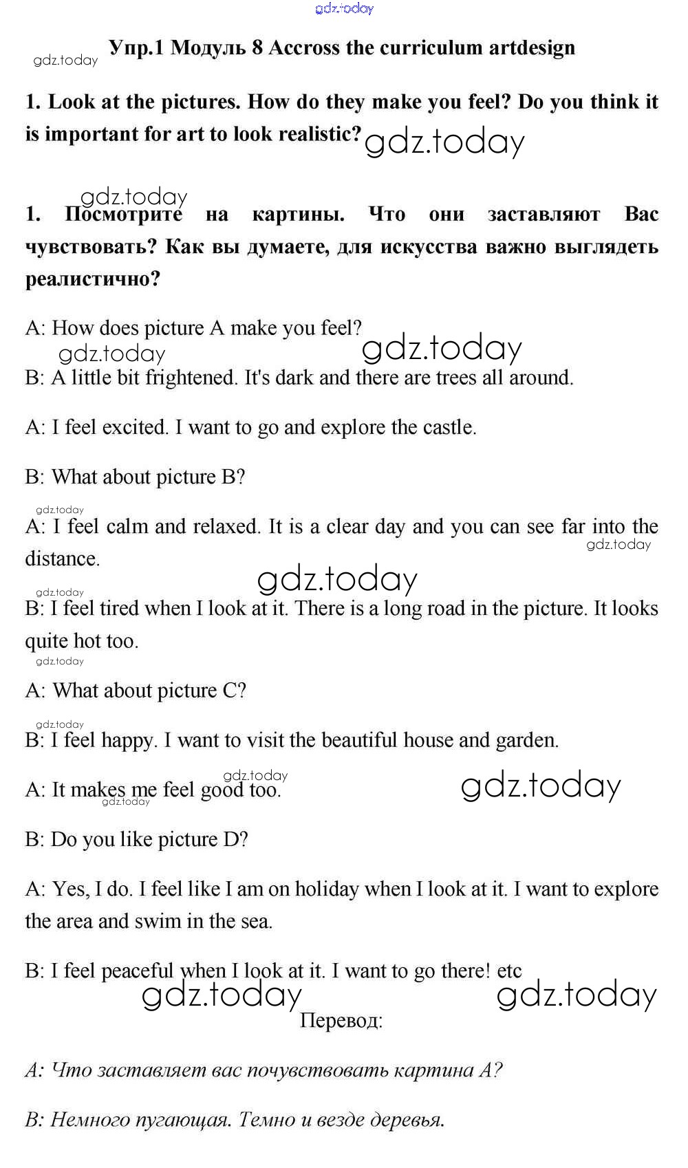 На страницах сайта gdz.today вы найдете учебный и вспомогательный материал, направленный на улучшения знаний школьной программы. ГДЗ - онлайн мир знаний Accross the curriculum art&design Решение к Module 8 1 Учебнику по Английскому языку для 11 класса Эванс, Дули Просвещение Spotlight 2015