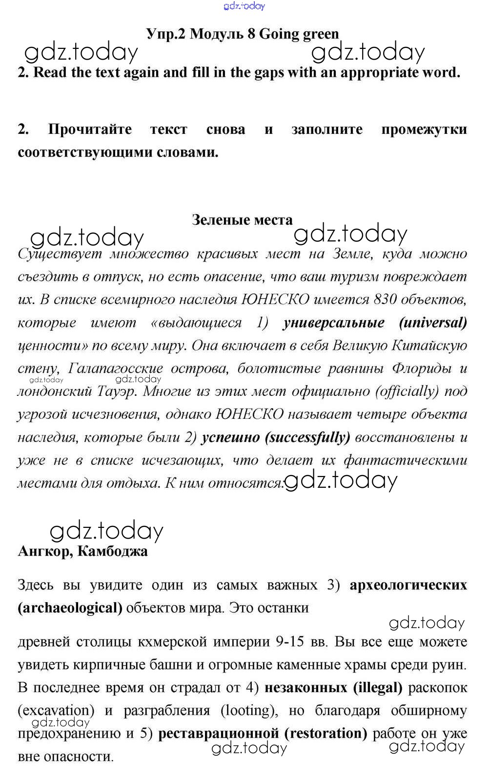 На страницах сайта gdz.today вы найдете учебный и вспомогательный материал, направленный на улучшения знаний школьной программы. ГДЗ - онлайн мир знаний Going green Решение к Module 8 2 Учебнику по Английскому языку для 11 класса Эванс, Дули Просвещение Spotlight 2015