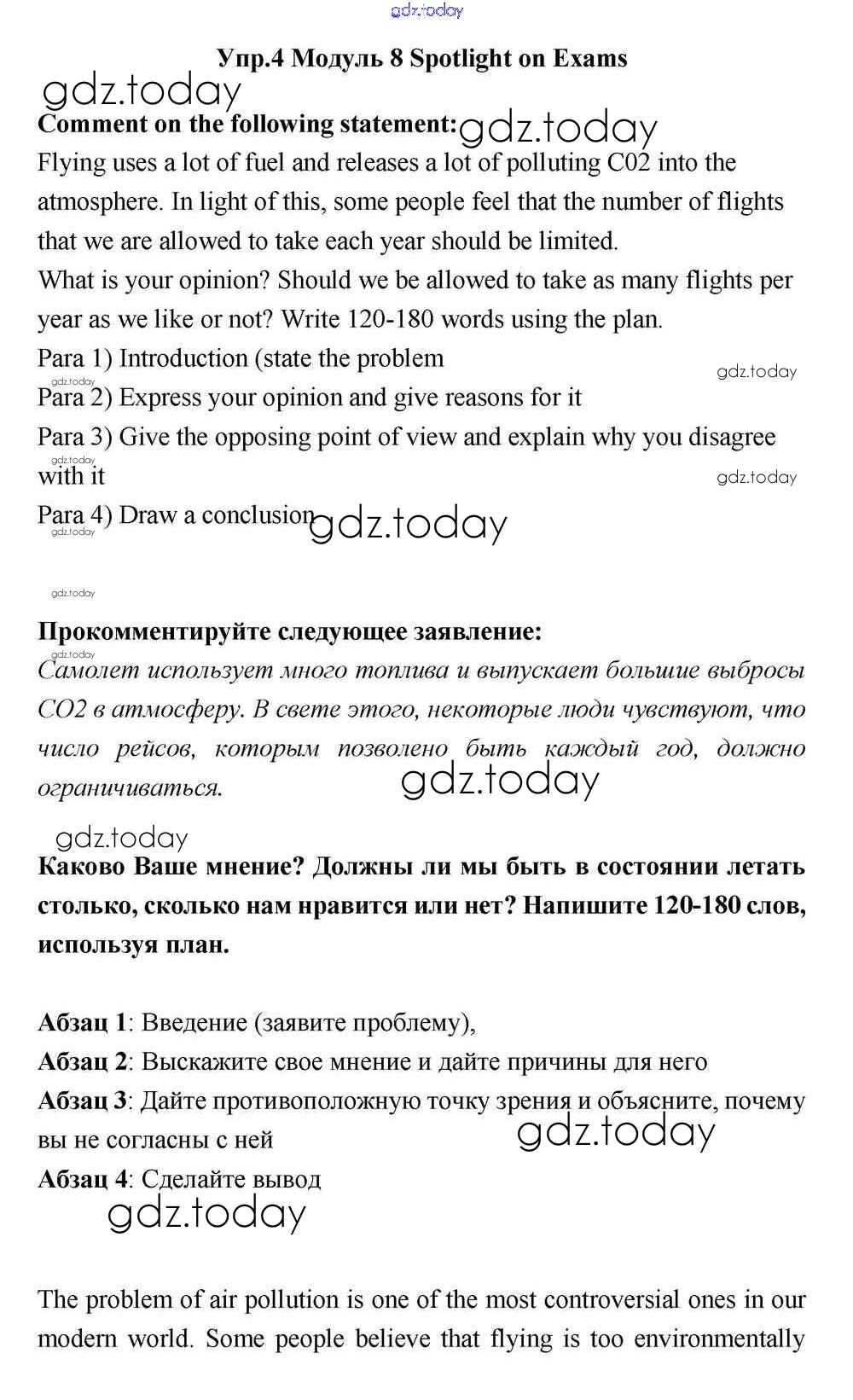 На страницах сайта gdz.today вы найдете учебный и вспомогательный материал, направленный на улучшения знаний школьной программы. ГДЗ - онлайн мир знаний Spotlight on Exams Решение к Module 8 4 Учебнику по Английскому языку для 11 класса Эванс, Дули Просвещение Spotlight 2015
