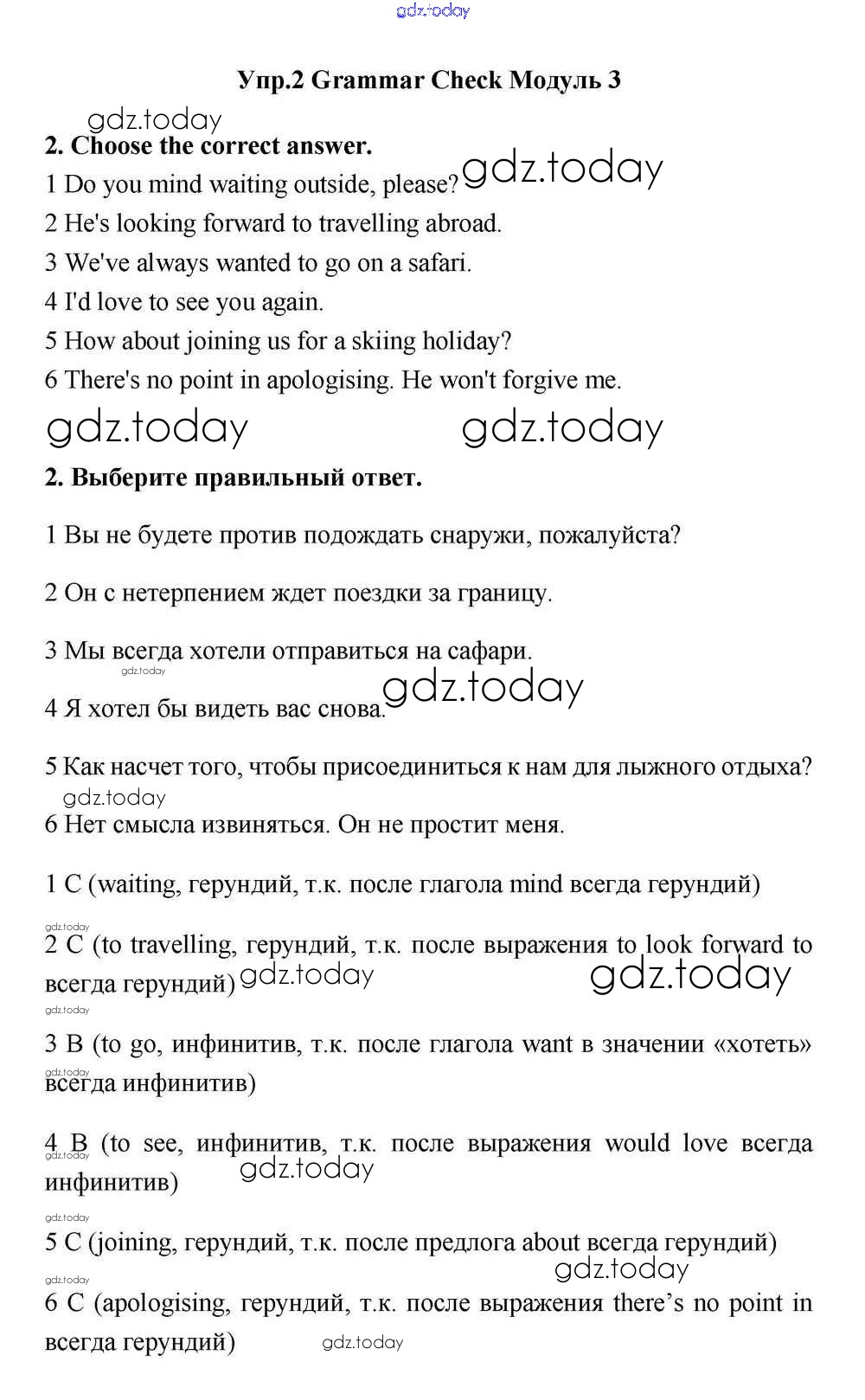 На страницах сайта gdz.today вы найдете учебный и вспомогательный материал, направленный на улучшения знаний школьной программы. ГДЗ - онлайн мир знаний Module 3 Решение к Grammar Check 2 Учебнику по Английскому языку для 11 класса Эванс, Дули  Просвещение Spotlight 2015