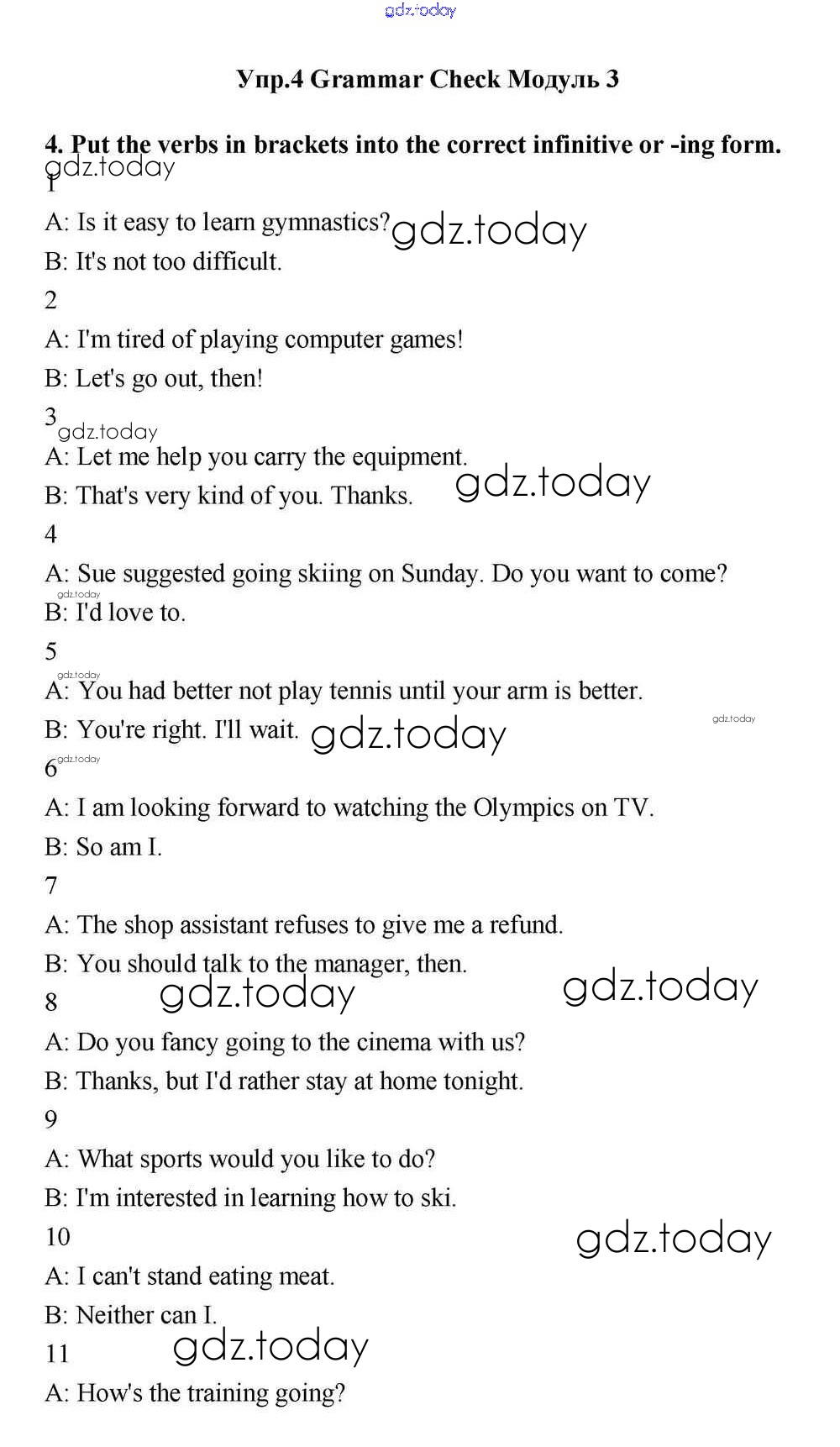 На страницах сайта gdz.today вы найдете учебный и вспомогательный материал, направленный на улучшения знаний школьной программы. ГДЗ - онлайн мир знаний Module 3 Решение к Grammar Check 4 Учебнику по Английскому языку для 11 класса Эванс, Дули Просвещение Spotlight 2015
