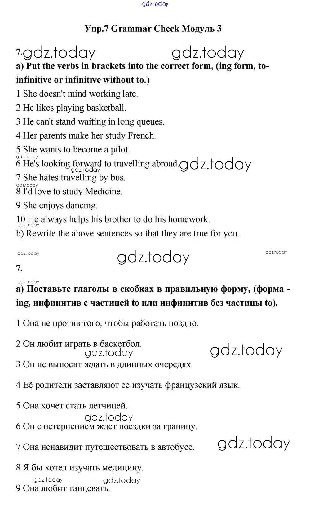 На страницах сайта gdz.today вы найдете учебный и вспомогательный материал, направленный на улучшения знаний школьной программы. ГДЗ - онлайн мир знаний Module 3 Решение к Grammar Check 7 Учебнику по Английскому языку для 11 класса Эванс, Дули Просвещение Spotlight 2015