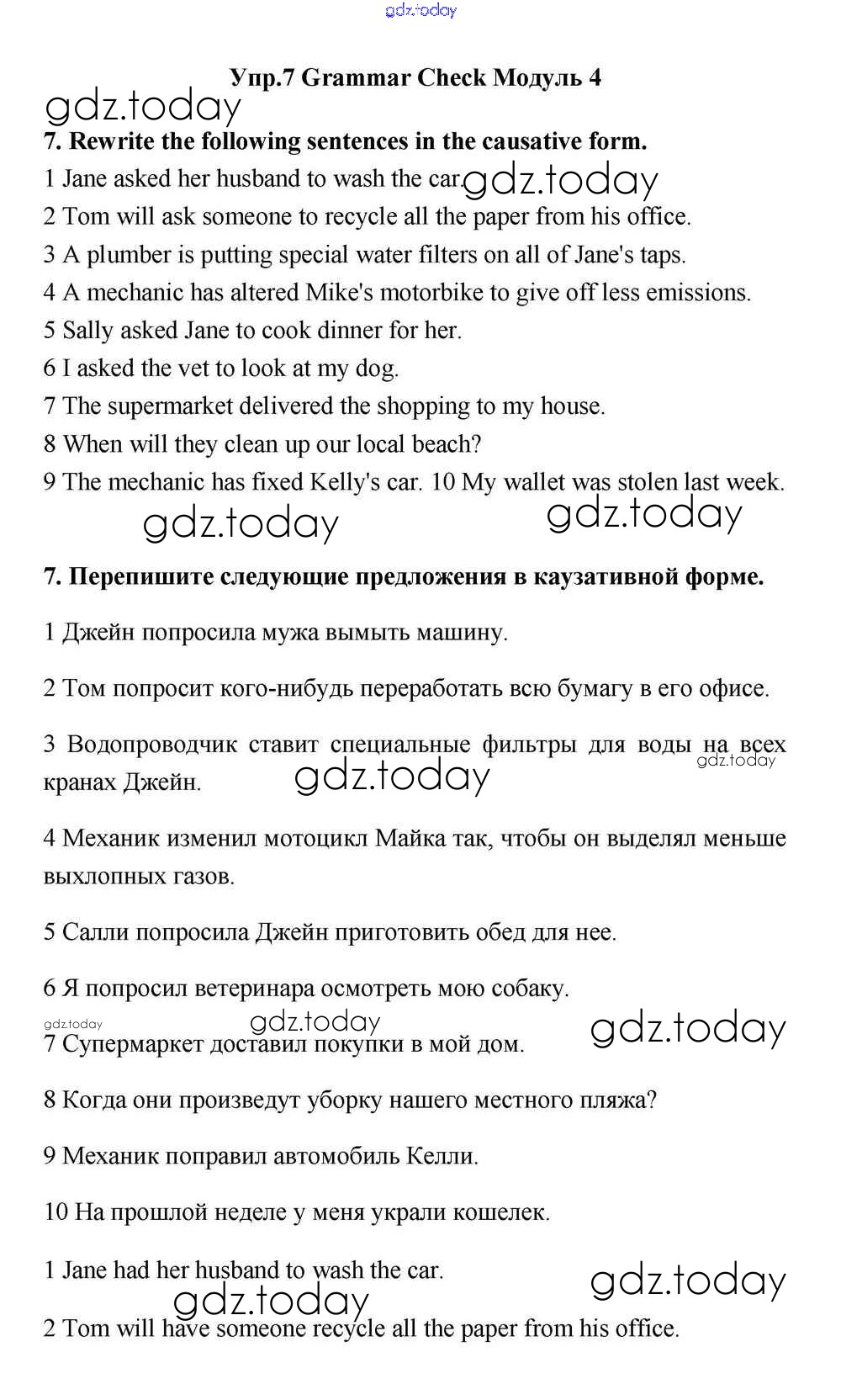 На страницах сайта gdz.today вы найдете учебный и вспомогательный материал, направленный на улучшения знаний школьной программы. ГДЗ - онлайн мир знаний Module 4 Решение к Grammar Check 7 Учебнику по Английскому языку для 11 класса Эванс, Дули Просвещение Spotlight 2015