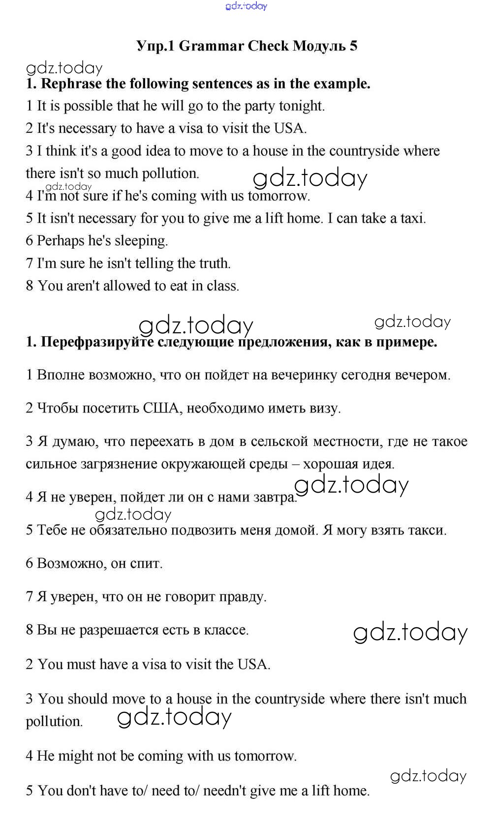 На страницах сайта gdz.today вы найдете учебный и вспомогательный материал, направленный на улучшения знаний школьной программы. ГДЗ - онлайн мир знаний Module 5 Решение к Grammar Check 1 Учебнику по Английскому языку для 11 класса Эванс, Дули Просвещение Spotlight 2015