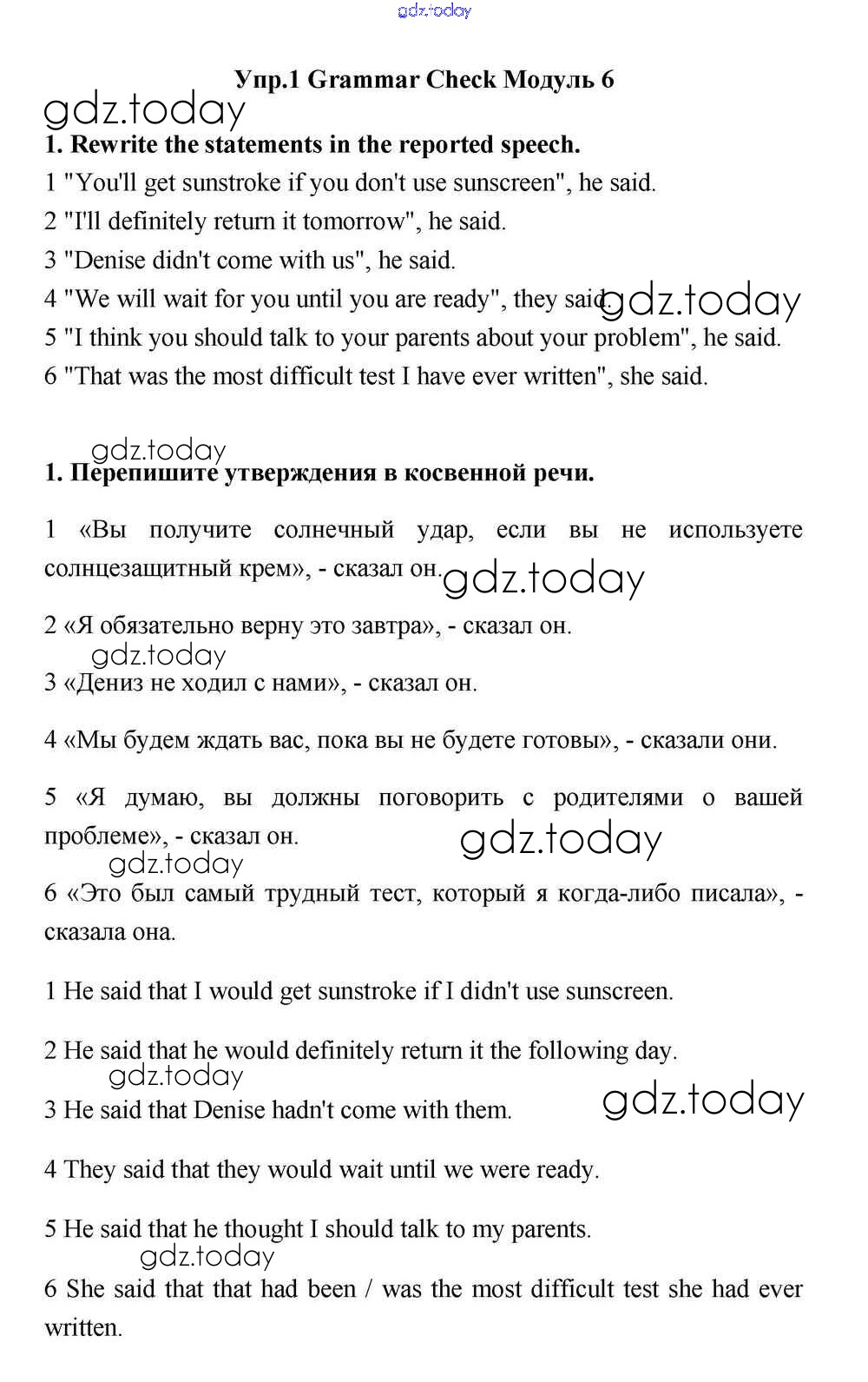 На страницах сайта gdz.today вы найдете учебный и вспомогательный материал, направленный на улучшения знаний школьной программы. ГДЗ - онлайн мир знаний Module 6 Решение к Grammar Check 1 Учебнику по Английскому языку для 11 класса Эванс, Дули Просвещение Spotlight 2015