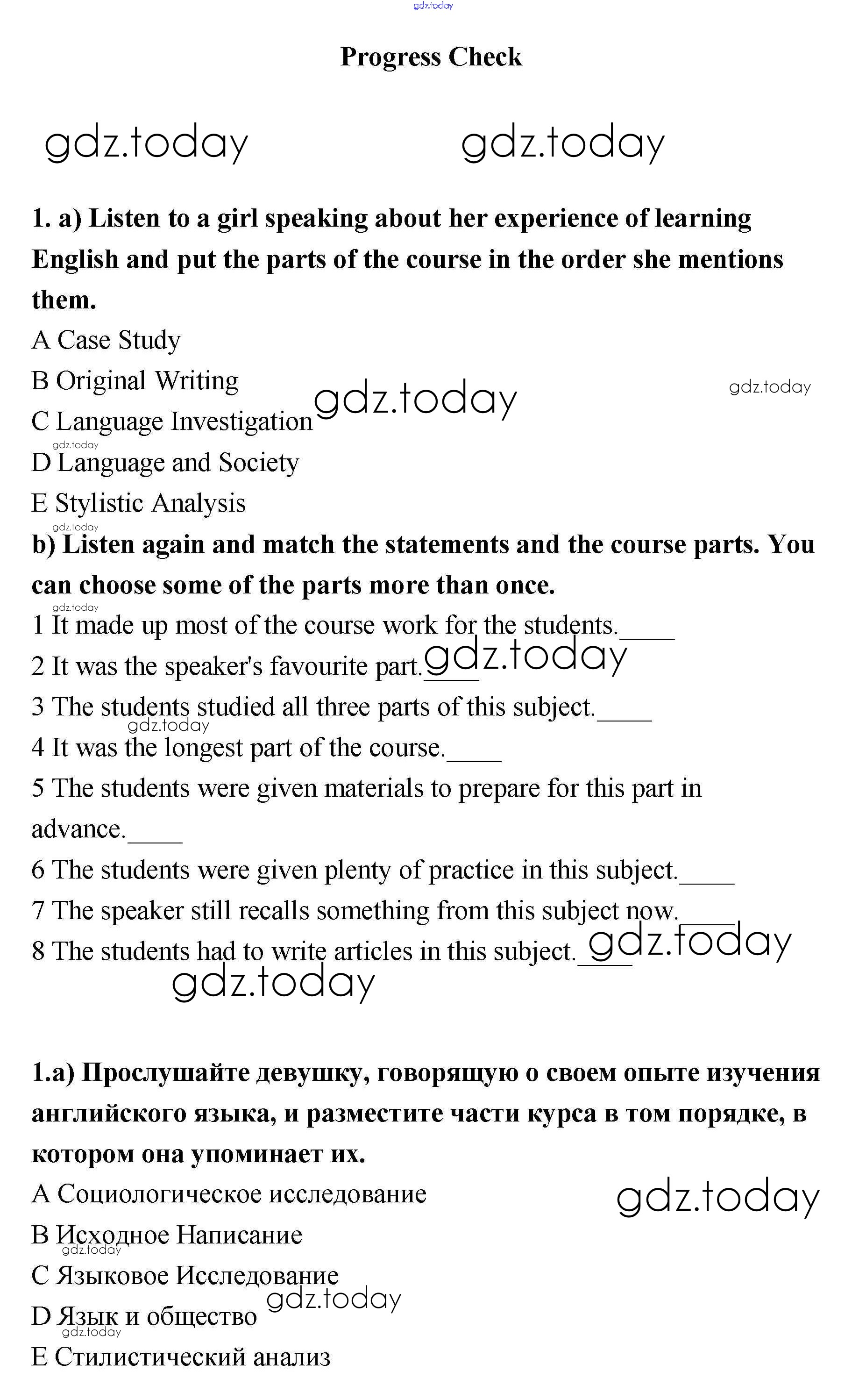 На страницах сайта gdz.today вы найдете учебный и вспомогательный материал, направленный на улучшения знаний школьной программы. ГДЗ - онлайн мир знаний Progress Check Решение к Unit 1 1 Учебнику по Английскому языку для 11 класса Биболетова, Трубанева Титул Enjoy English 2015