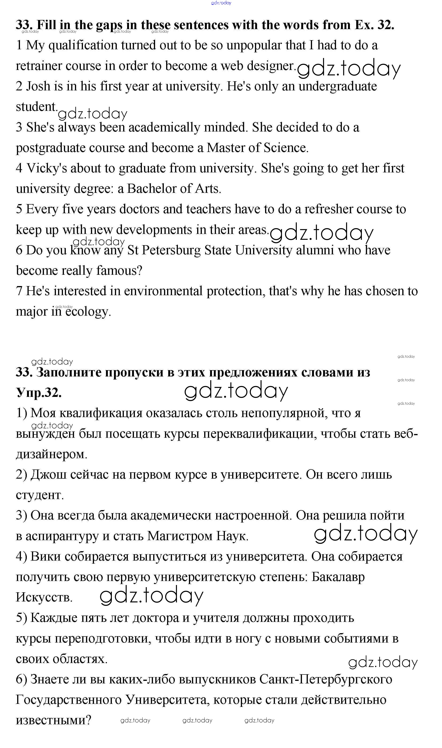 На страницах сайта gdz.today вы найдете учебный и вспомогательный материал, направленный на улучшения знаний школьной программы. ГДЗ - онлайн мир знаний Решение к Unit 2 33 Учебнику по Английскому языку для 11 класса Биболетова, Трубанева Титул Enjoy English 2015