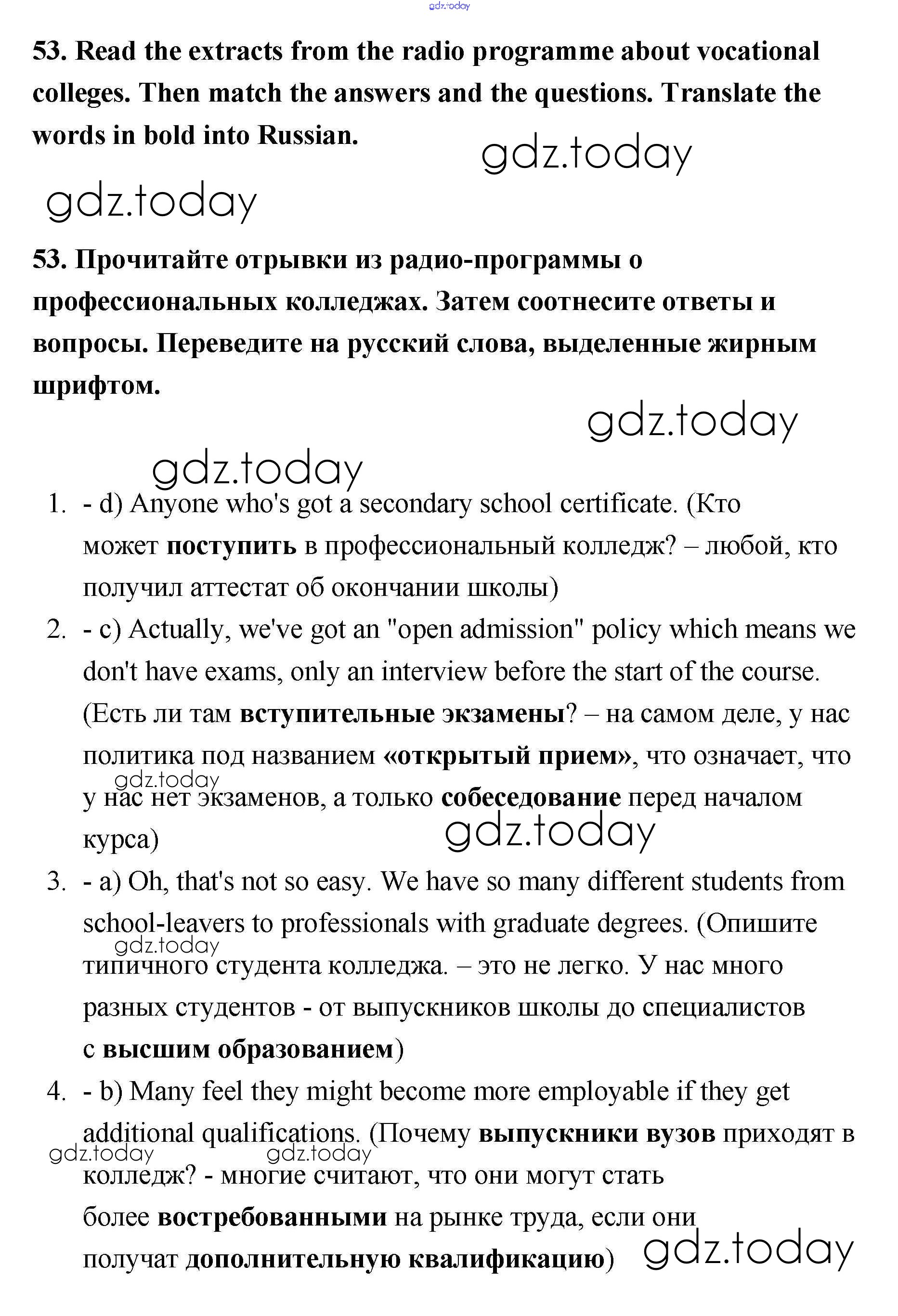 На страницах сайта gdz.today вы найдете учебный и вспомогательный материал, направленный на улучшения знаний школьной программы. ГДЗ - онлайн мир знаний Решение к Unit 2 53 Учебнику по Английскому языку для 11 класса Биболетова, Трубанева Титул Enjoy English 2015