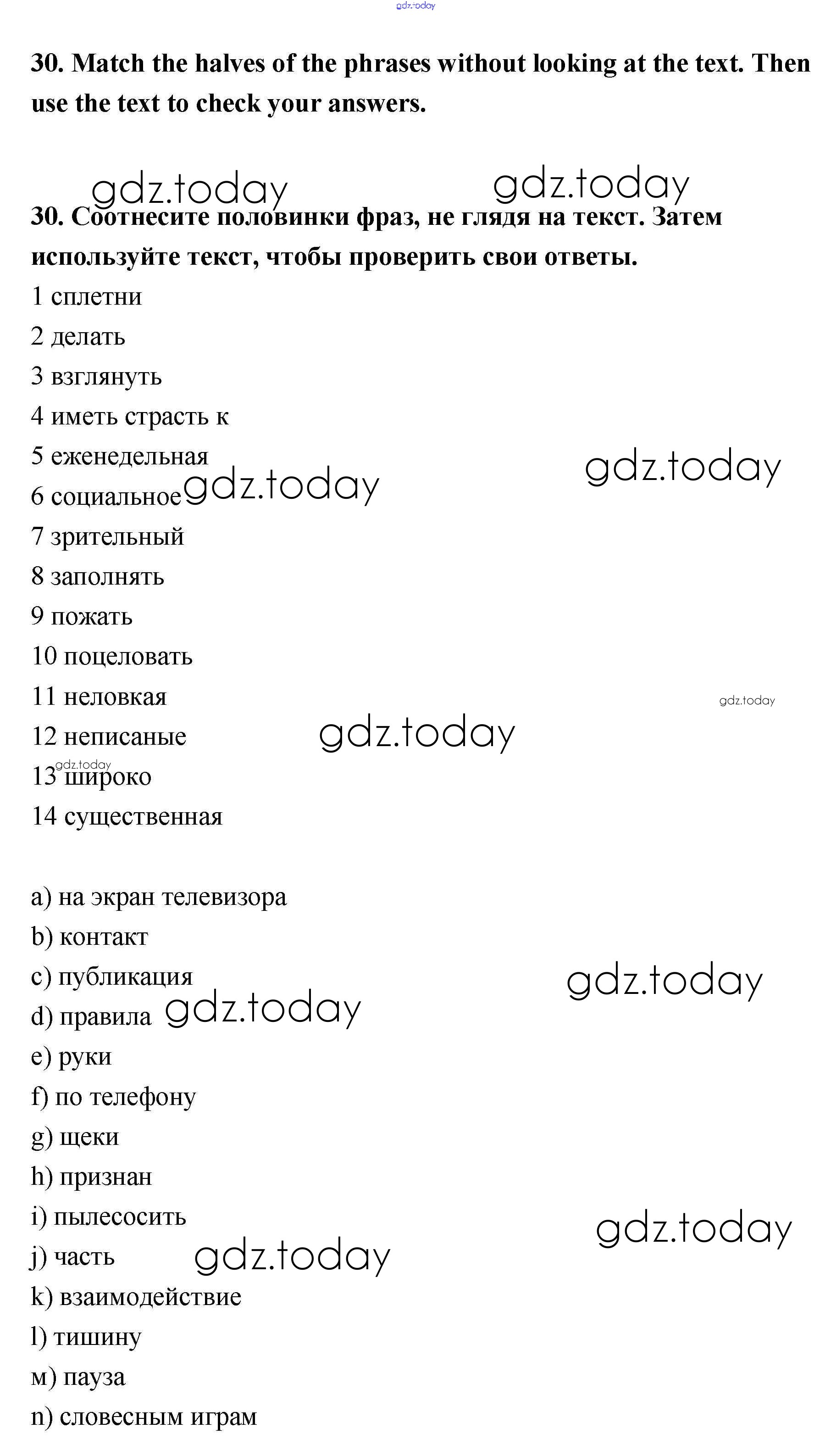 На страницах сайта gdz.today вы найдете учебный и вспомогательный материал, направленный на улучшения знаний школьной программы. ГДЗ - онлайн мир знаний Решение к Unit 4 30 Учебнику по Английскому языку для 11 класса Биболетова, Трубанева Титул Enjoy English 2015