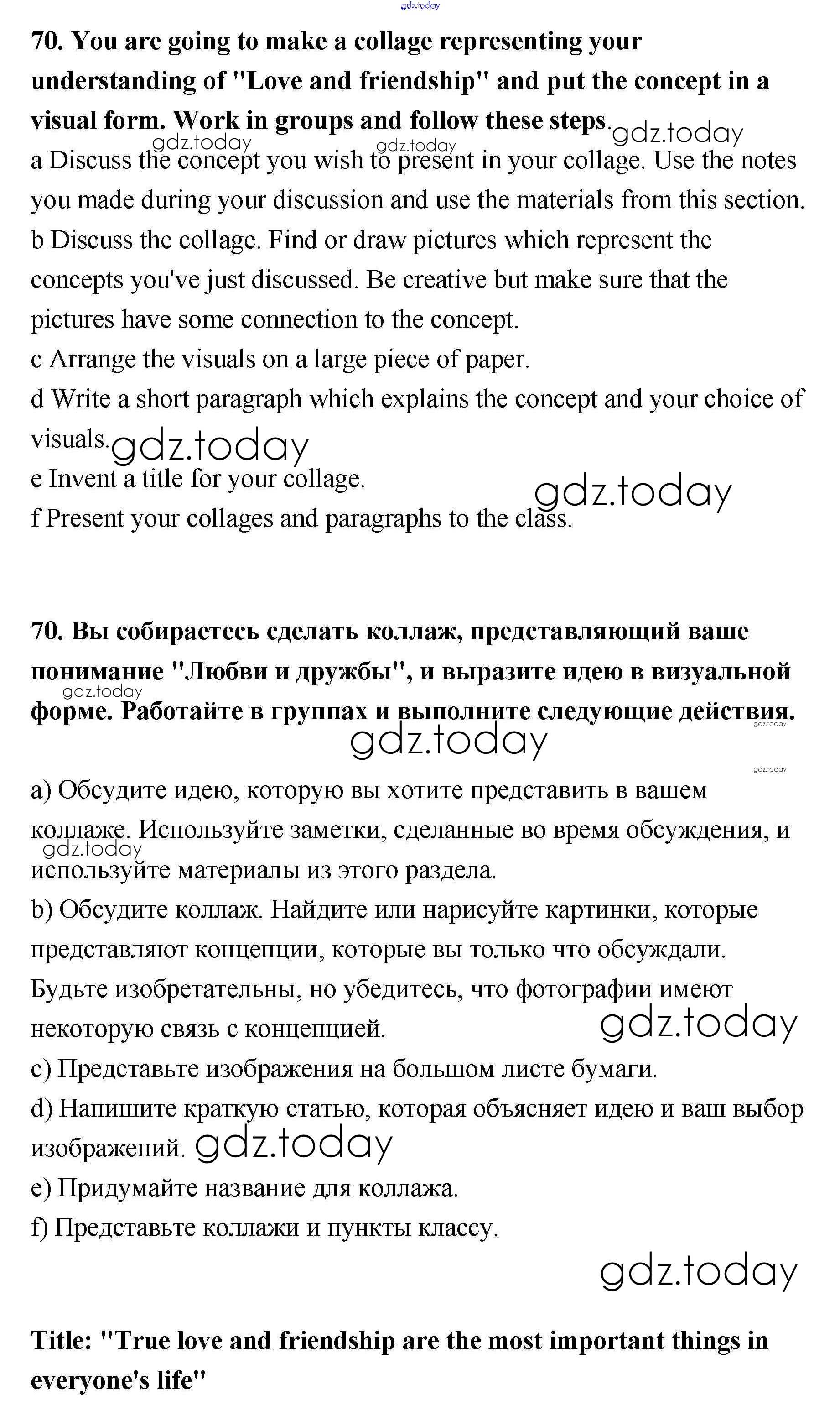 На страницах сайта gdz.today вы найдете учебный и вспомогательный материал, направленный на улучшения знаний школьной программы. ГДЗ - онлайн мир знаний Решение к Unit 4 70 Учебнику по Английскому языку для 11 класса Биболетова, Трубанева Титул Enjoy English 2015