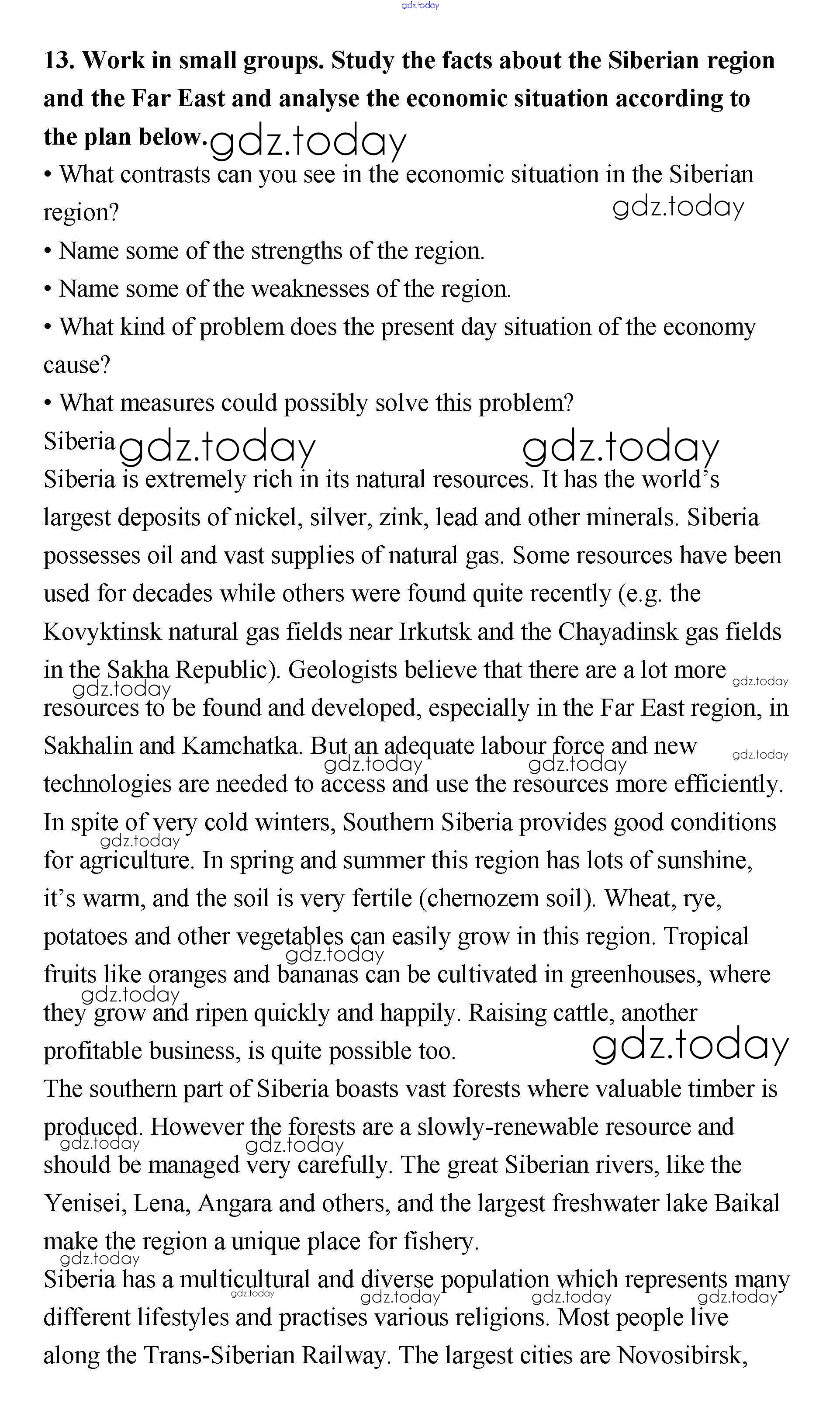 На страницах сайта gdz.today вы найдете учебный и вспомогательный материал, направленный на улучшения знаний школьной программы. ГДЗ - онлайн мир знаний What's economic geography about? Решение к School English 13 Учебнику по Английскому языку для 11 класса Биболетова, Трубанева Титул Enjoy English 2015