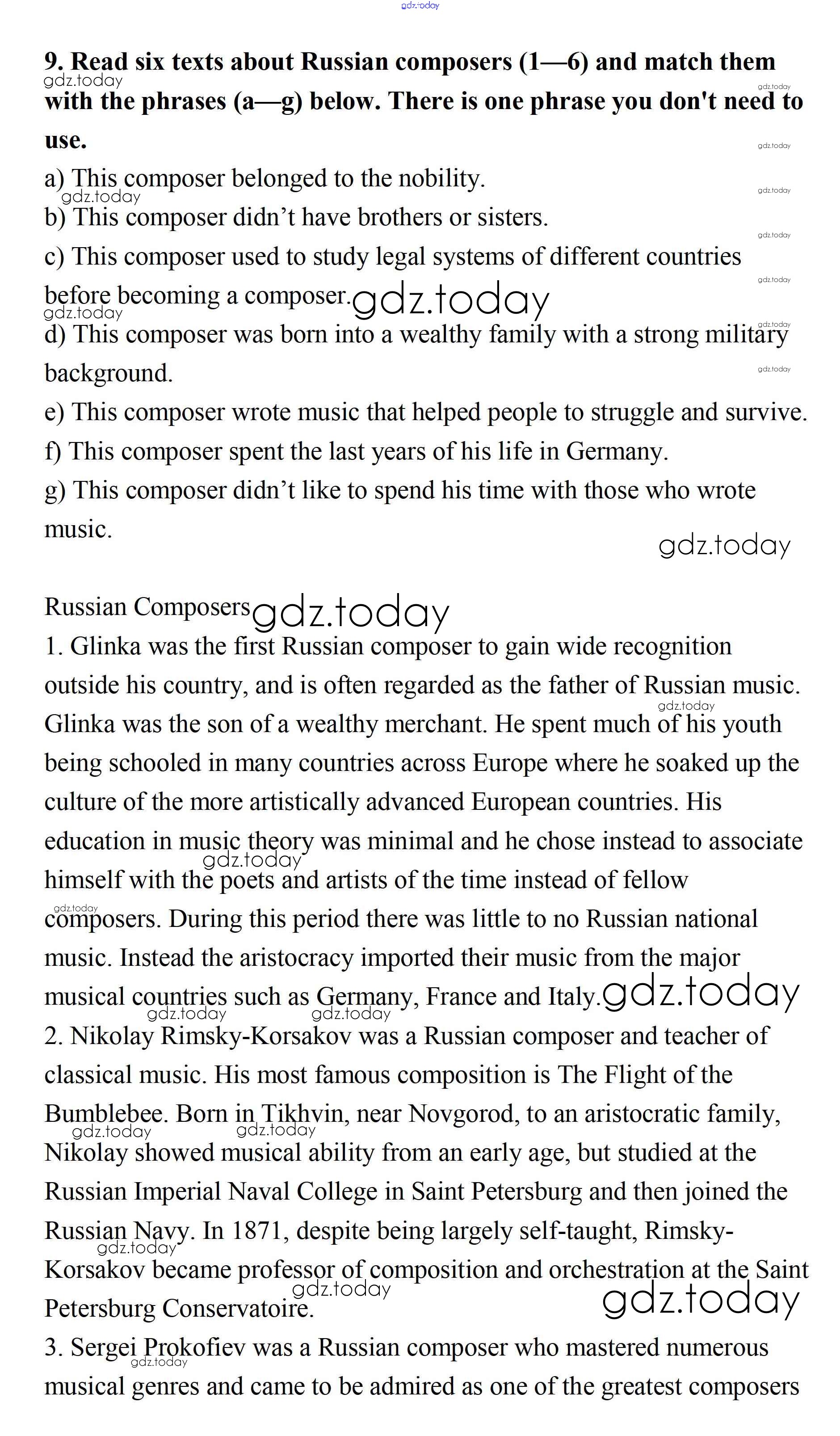На страницах сайта gdz.today вы найдете учебный и вспомогательный материал, направленный на улучшения знаний школьной программы. ГДЗ - онлайн мир знаний Решение. Unit 1. Sounds of Music  9 Учебнику по Английскому языку для 11 класса Афанасьева, Михеева Углубленный уровень Просвещение  2015